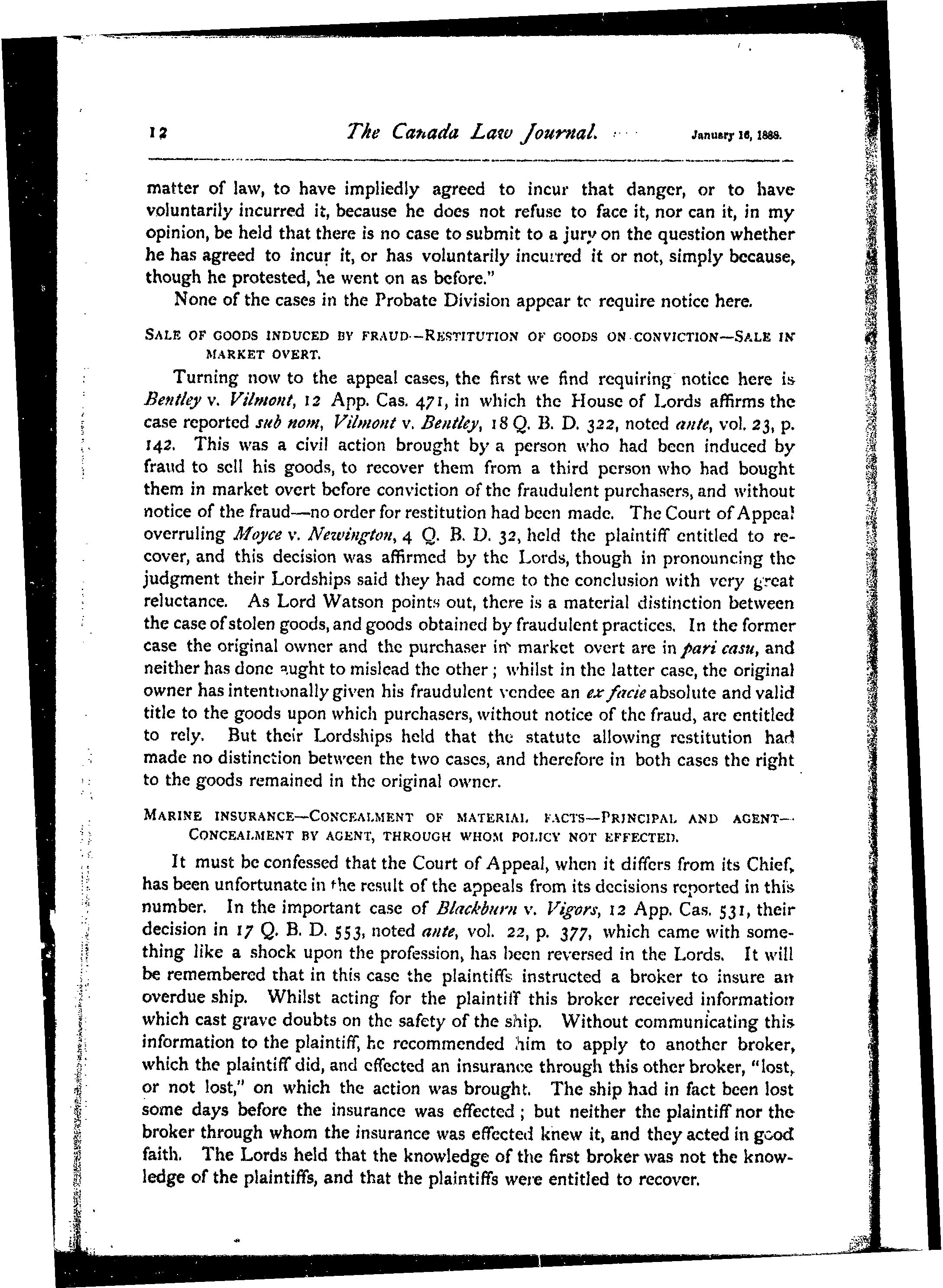 The Canada law journal [Vol. 24, no. 1 (Jan. 16, 1888)]