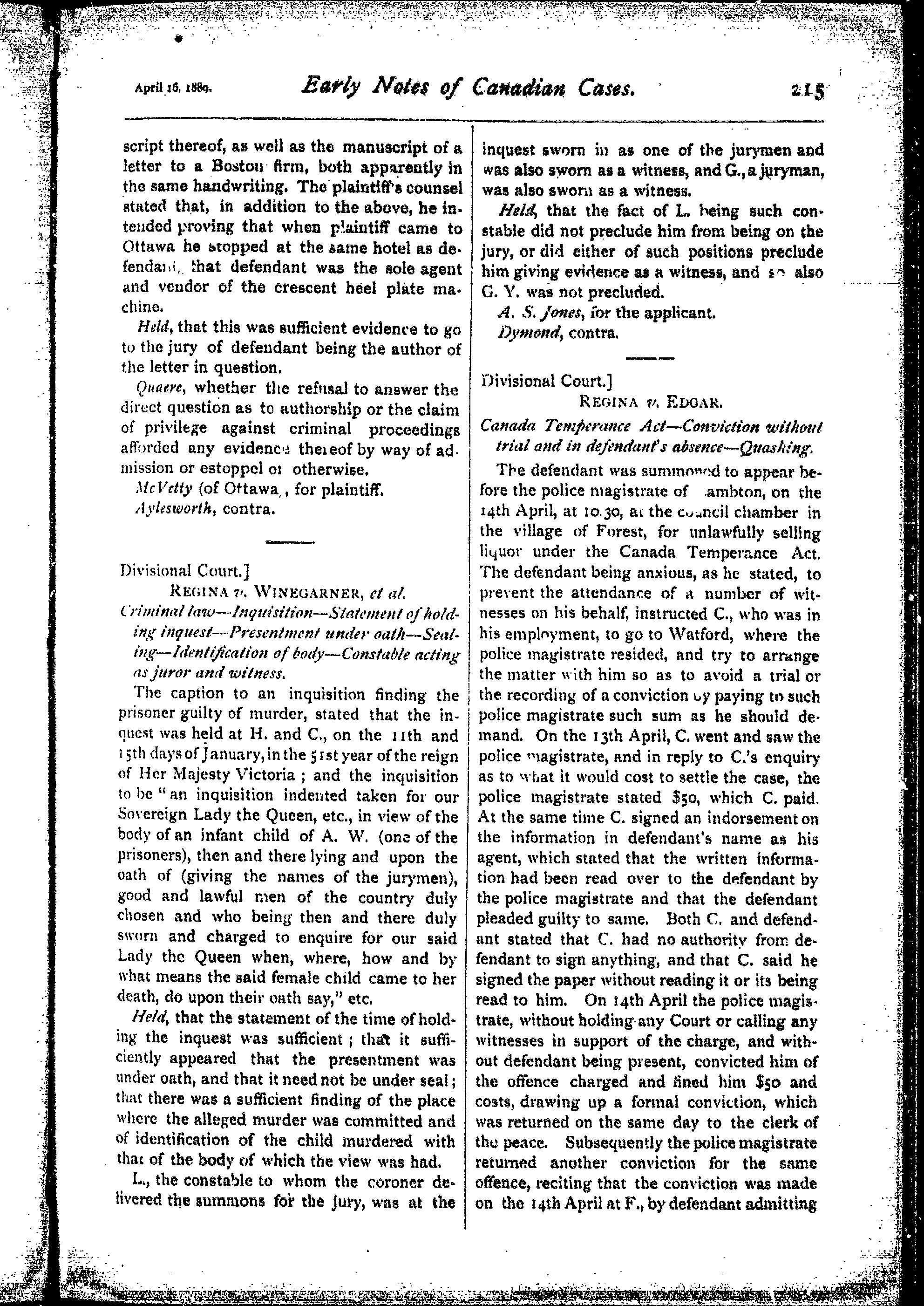 The Canada law journal [Vol. 25, no. 7 (Apr. 16, 1889)]