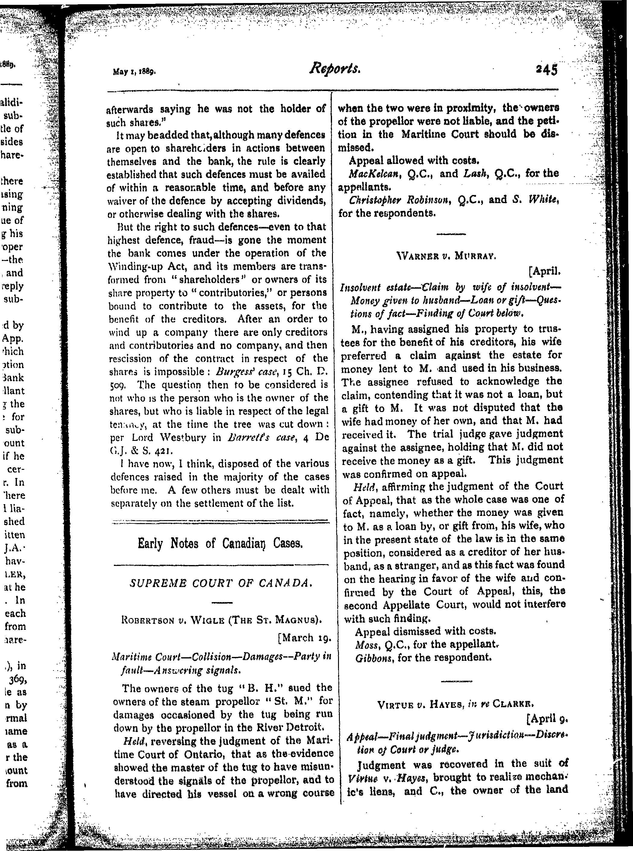 The Canada law journal [Vol. 25, no. 8 (May 1, 1889)]