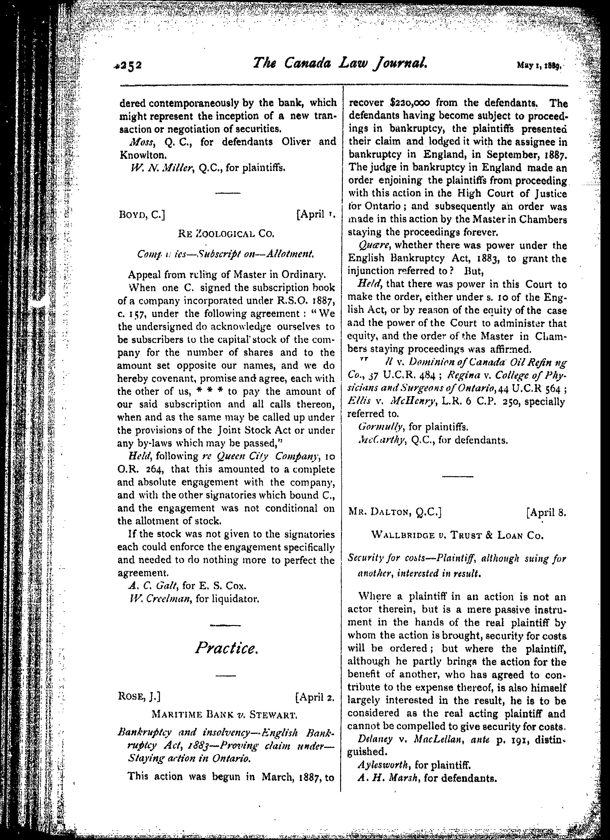 The Canada law journal : [Vol. 25, no. 8 (May 1, 1889)]