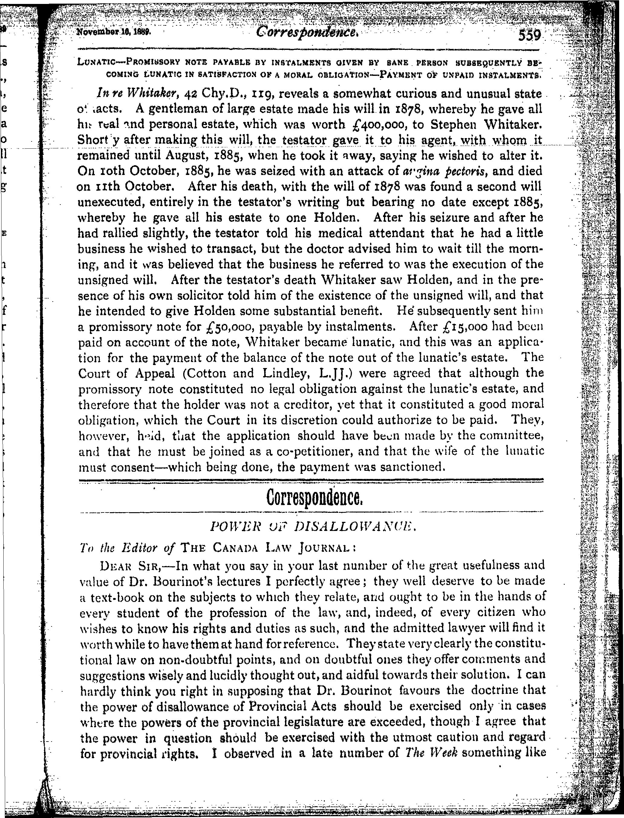 - The Canada law journal [Vol. 25, no. 18 (Nov. 16, 1889)]