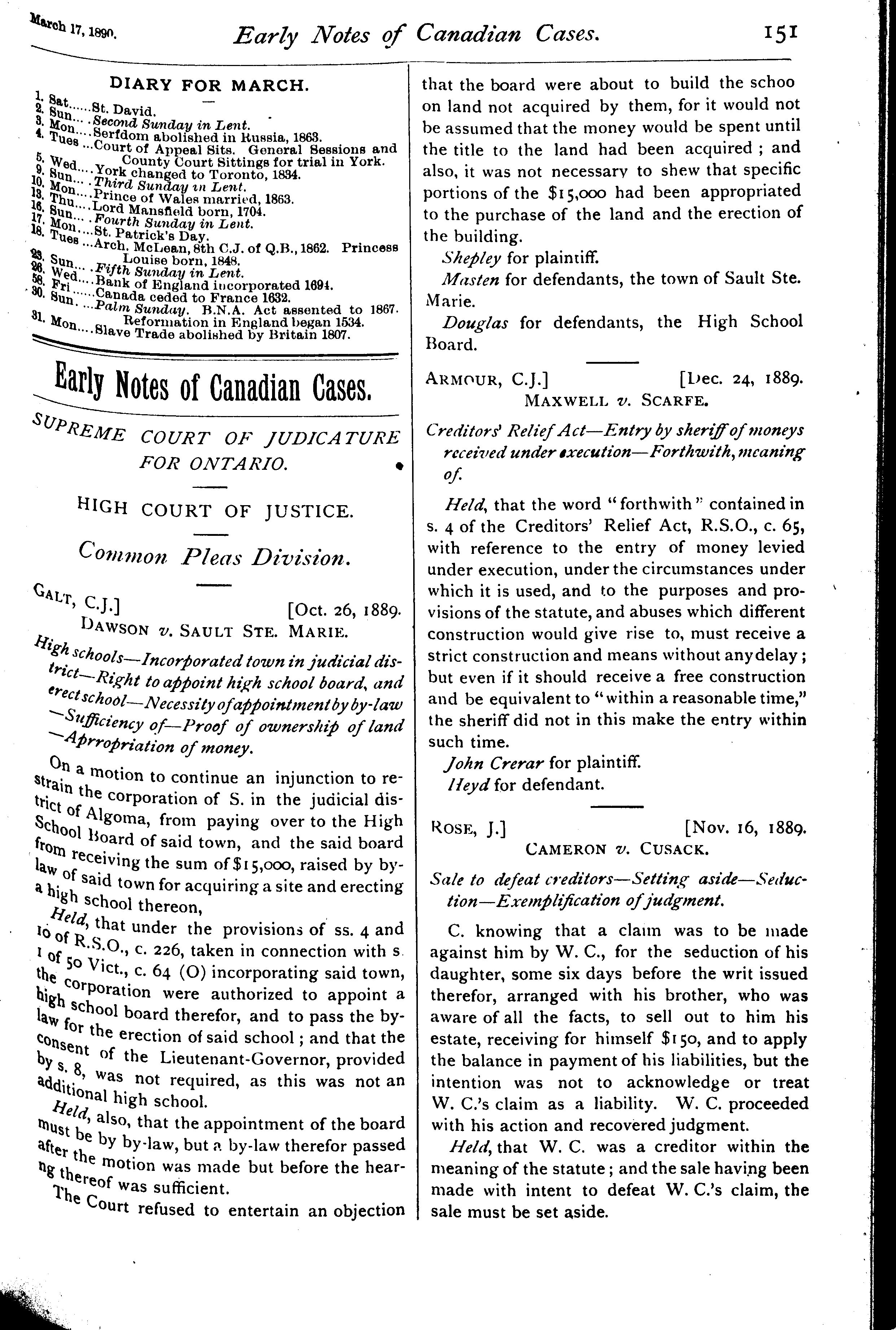 - The Canada law journal [Vol. 26, no. 5 (Mar. 17, 1890)]