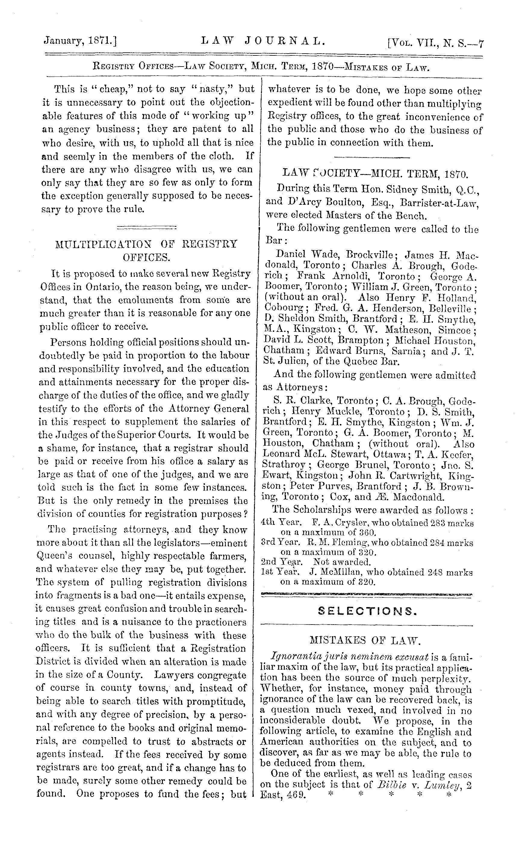 - The Canada law journal [New ser. v. 7, [no. 1] (Jan. 1871)]