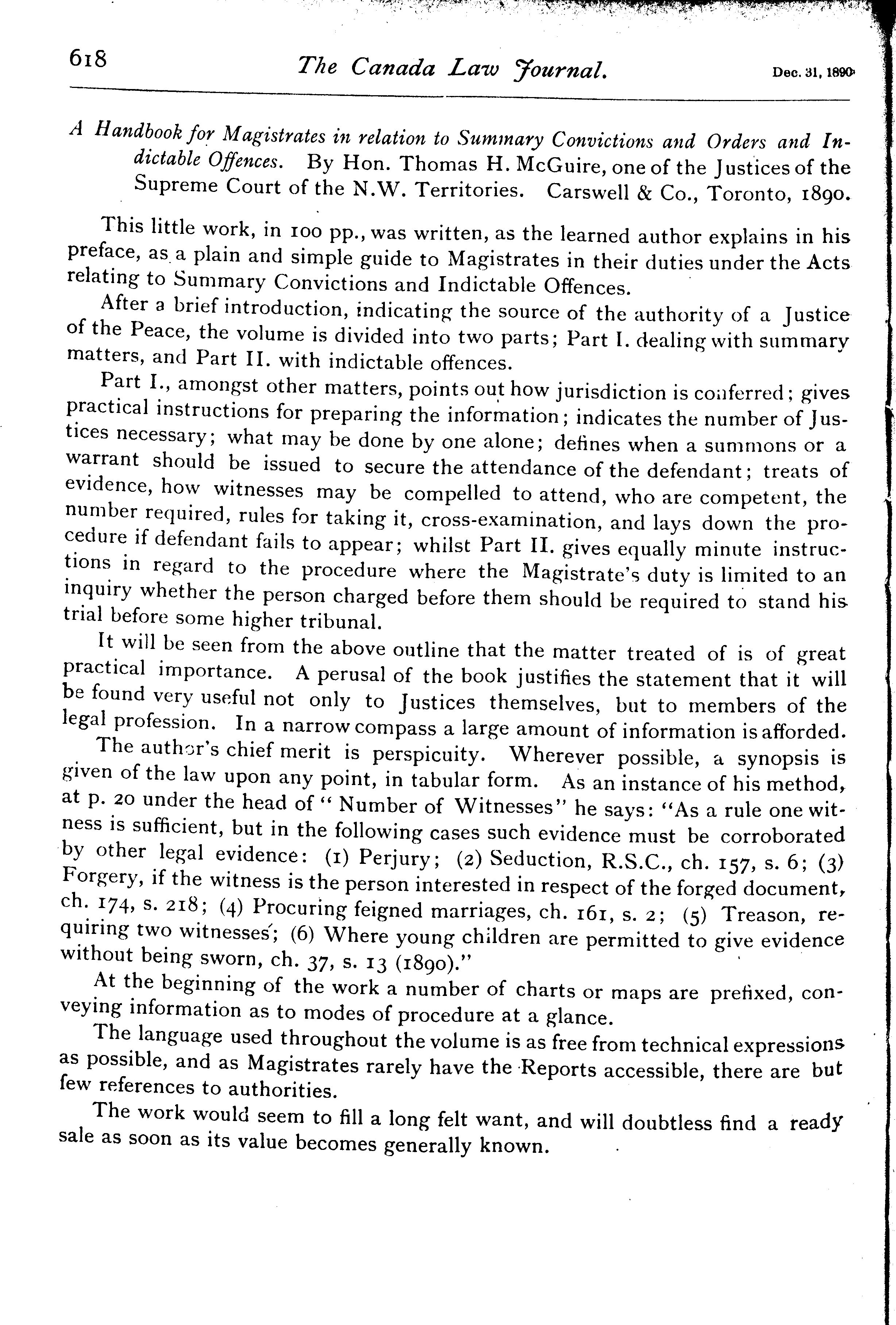- The Canada law journal [Vol. 26, no. 20 (Dec. 31, 1890)]