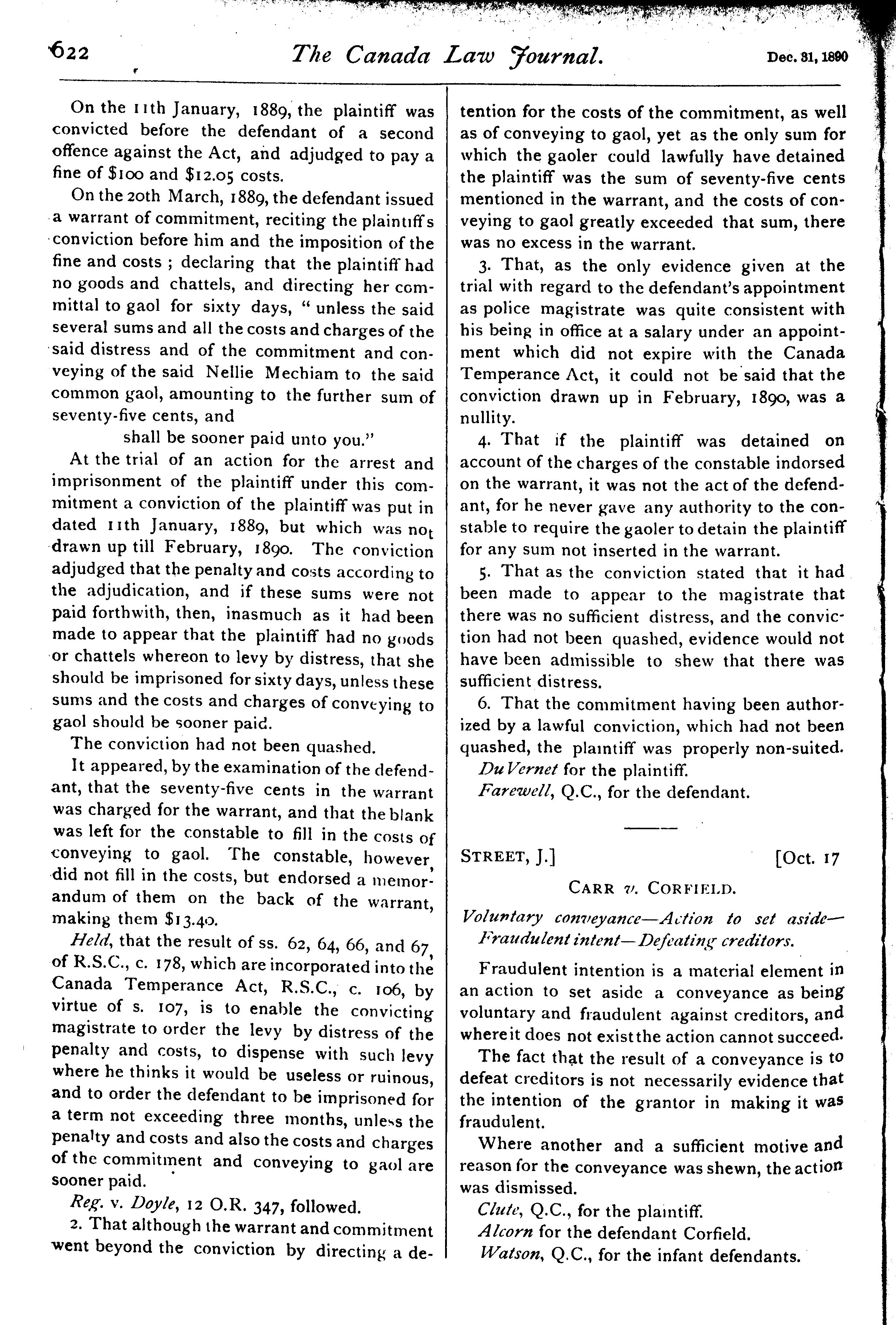 - The Canada law journal [Vol. 26, no. 20 (Dec. 31, 1890)]