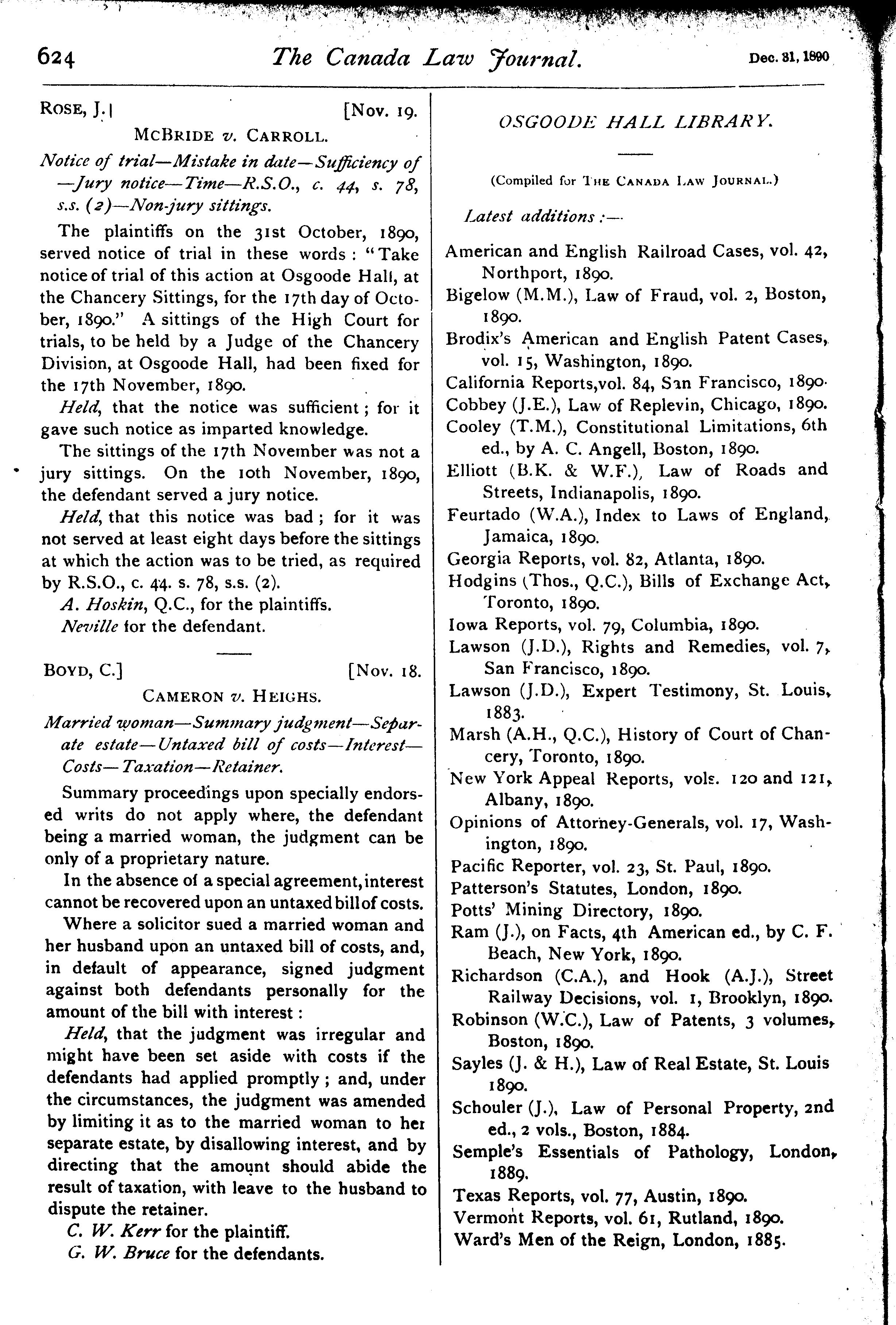 - The Canada law journal [Vol. 26, no. 20 (Dec. 31, 1890)]