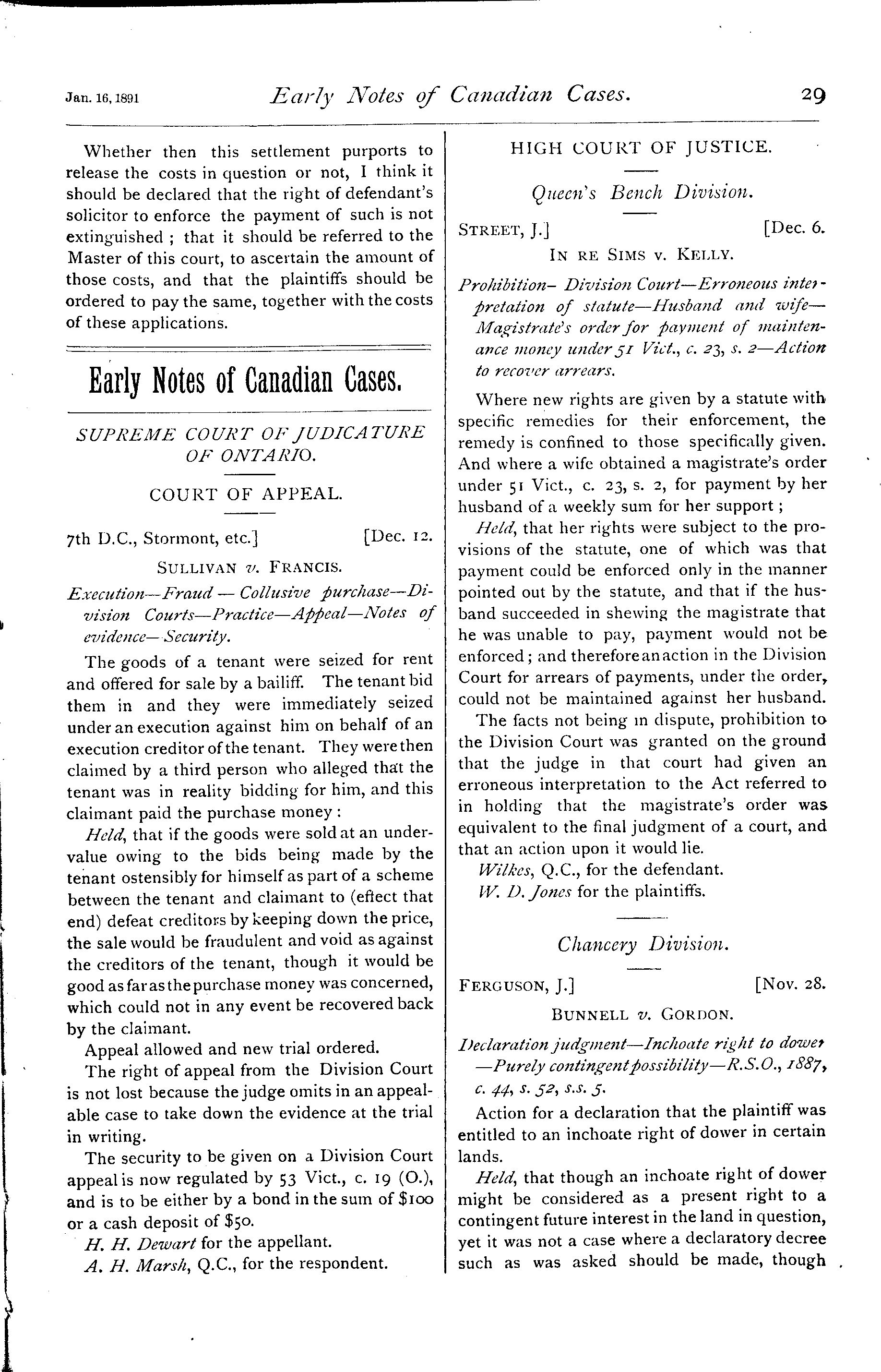 The Canada law journal [Vol. 27, no. 1 (Jan. 16, 1891)]