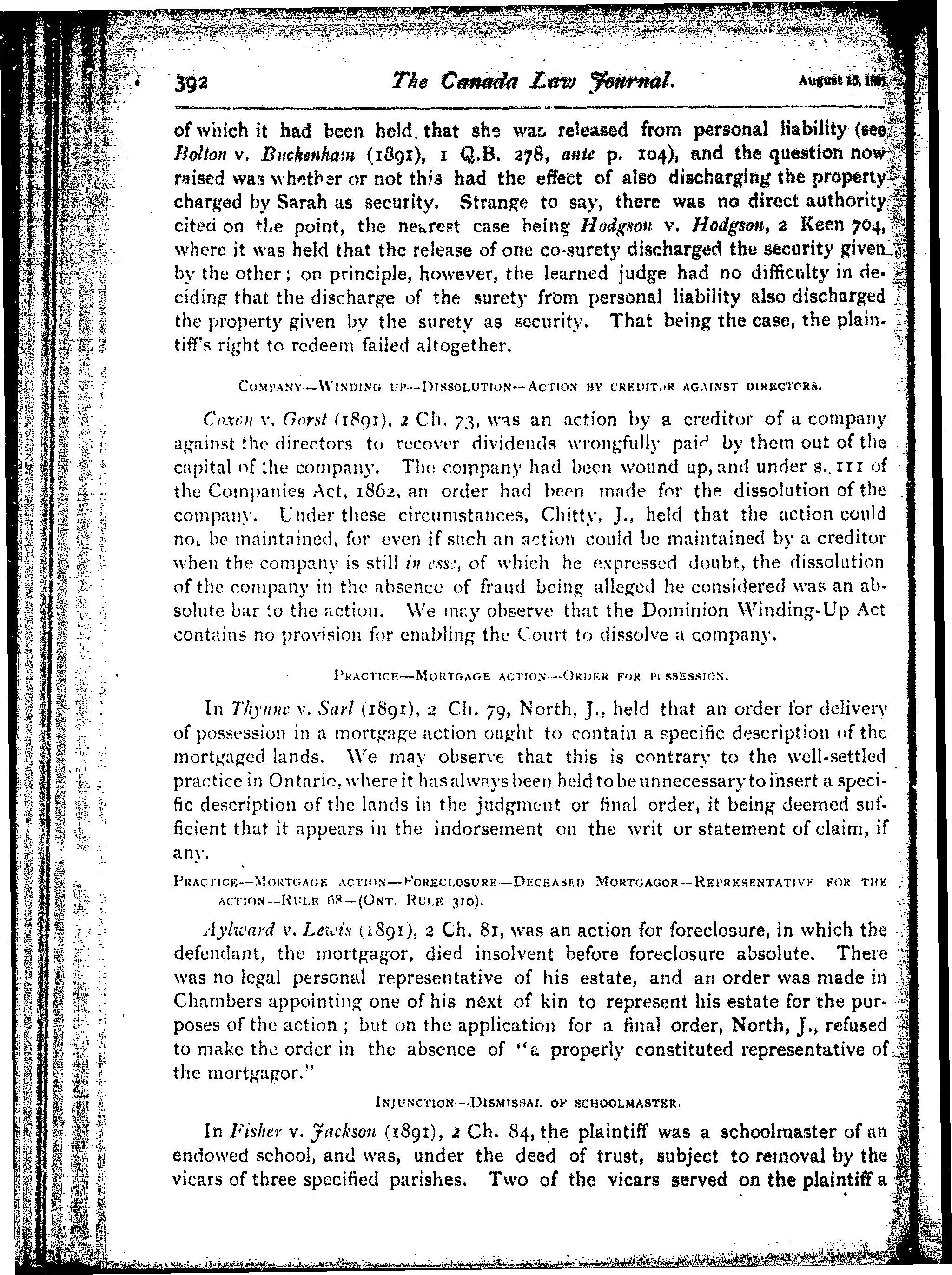 - The Canada law journal [Vol. 27, no. 13 (Aug. 15, 1891)]