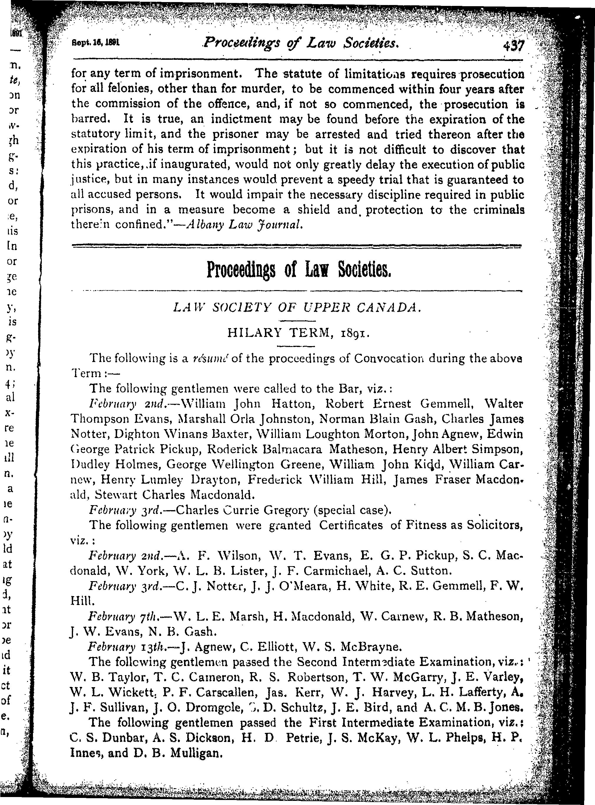 The Canada law journal : [Vol. 27, no. 14 (Sept. 16, 1891)]