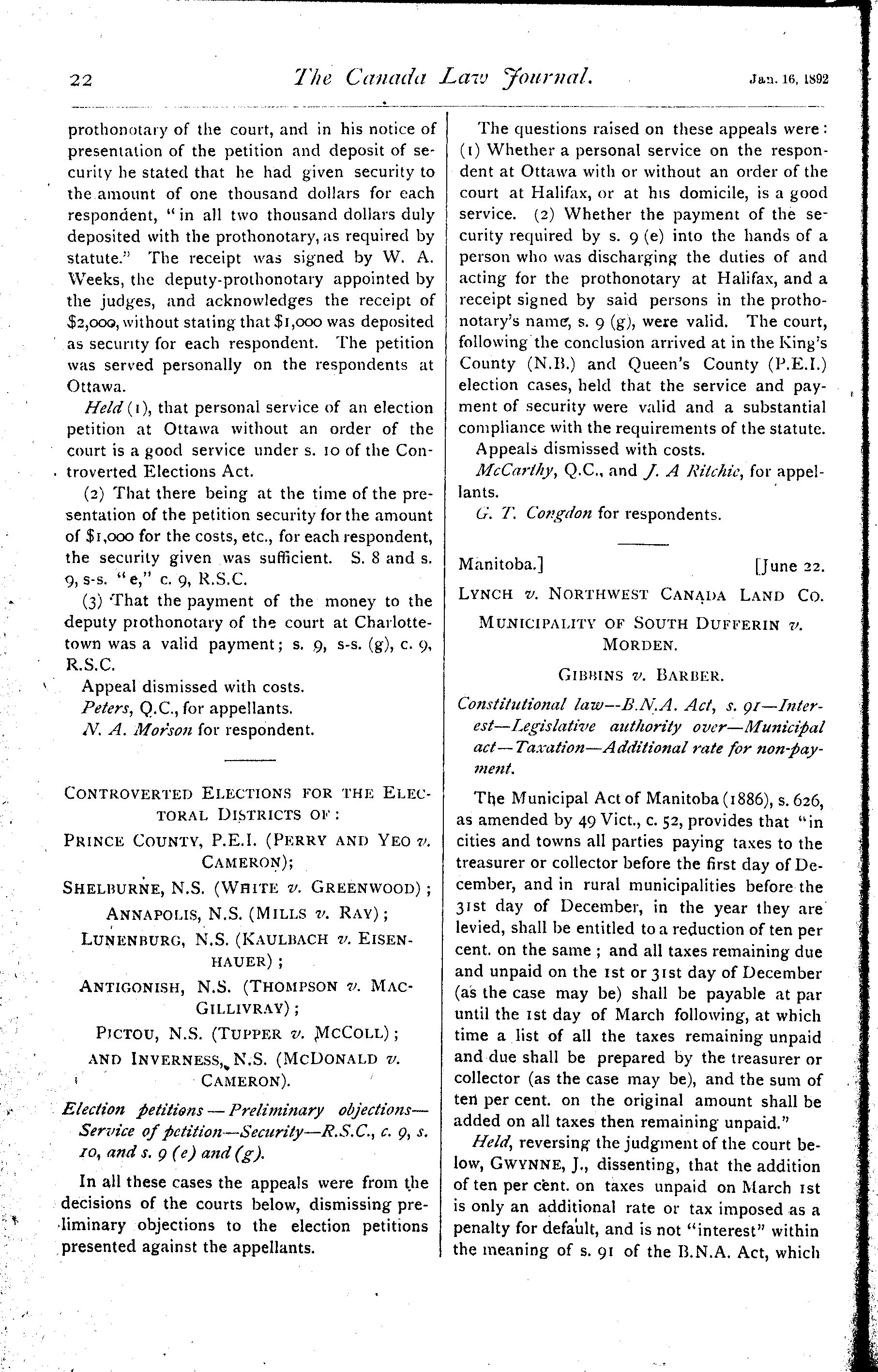 The Canada law journal : [Vol. 28, no. 1 (Jan. 16, 1892)]