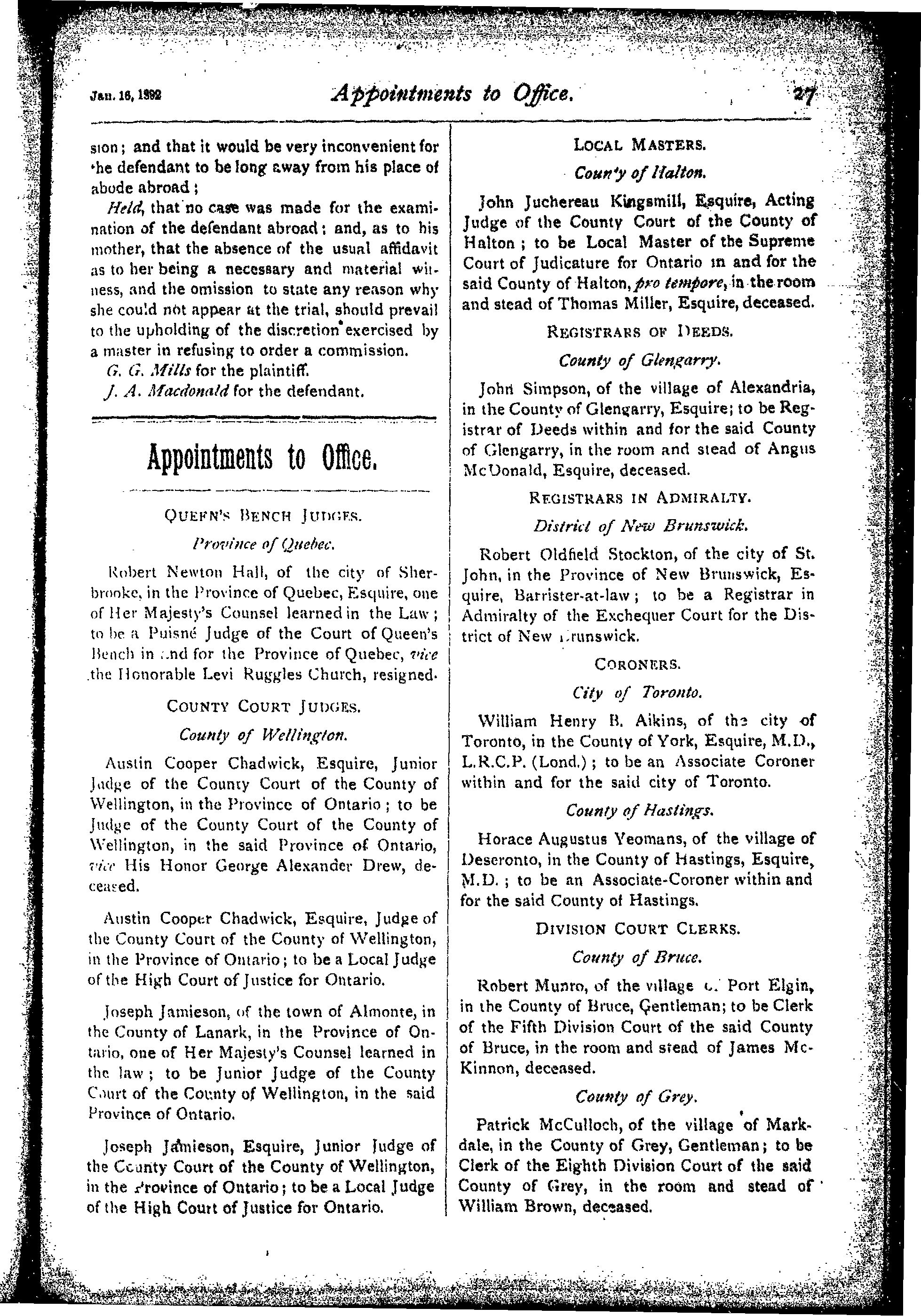 - The Canada law journal [Vol. 28, no. 1 (Jan. 16, 1892)]