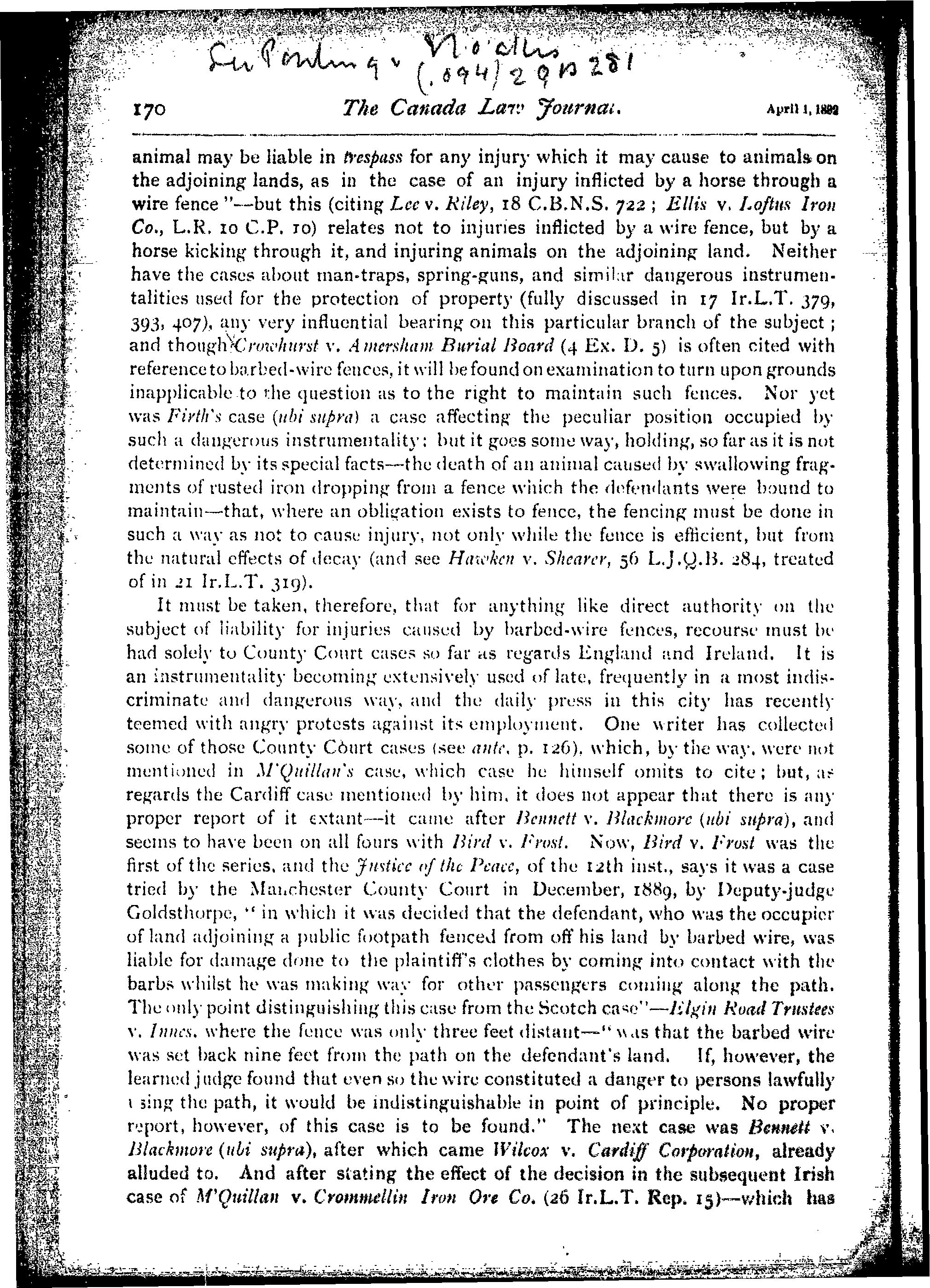 The Canada law journal : [Vol. 28, no. 6 (Apr. 1, 1892)]