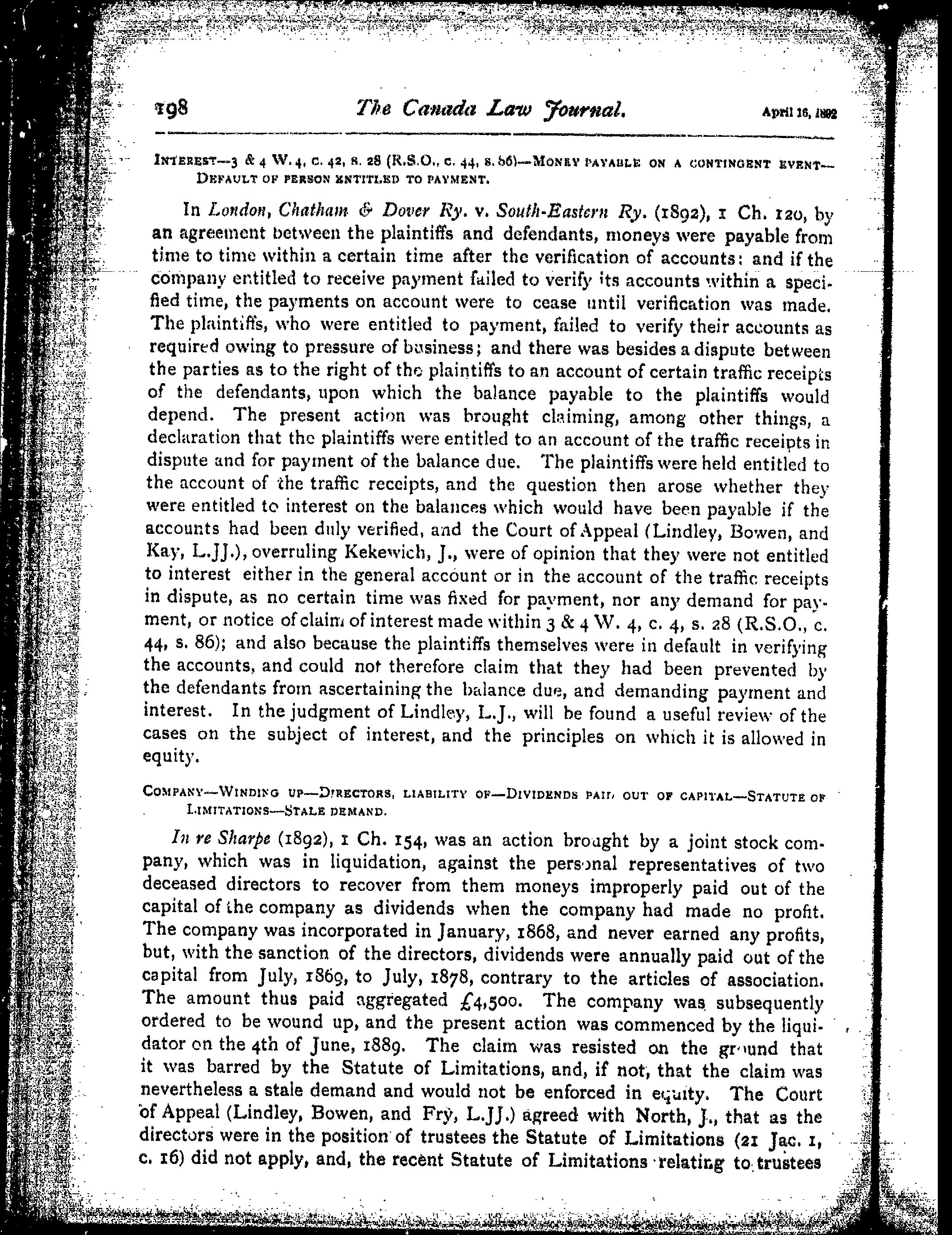 - The Canada law journal [Vol. 28, no. 7 (Apr. 16, 1892)]