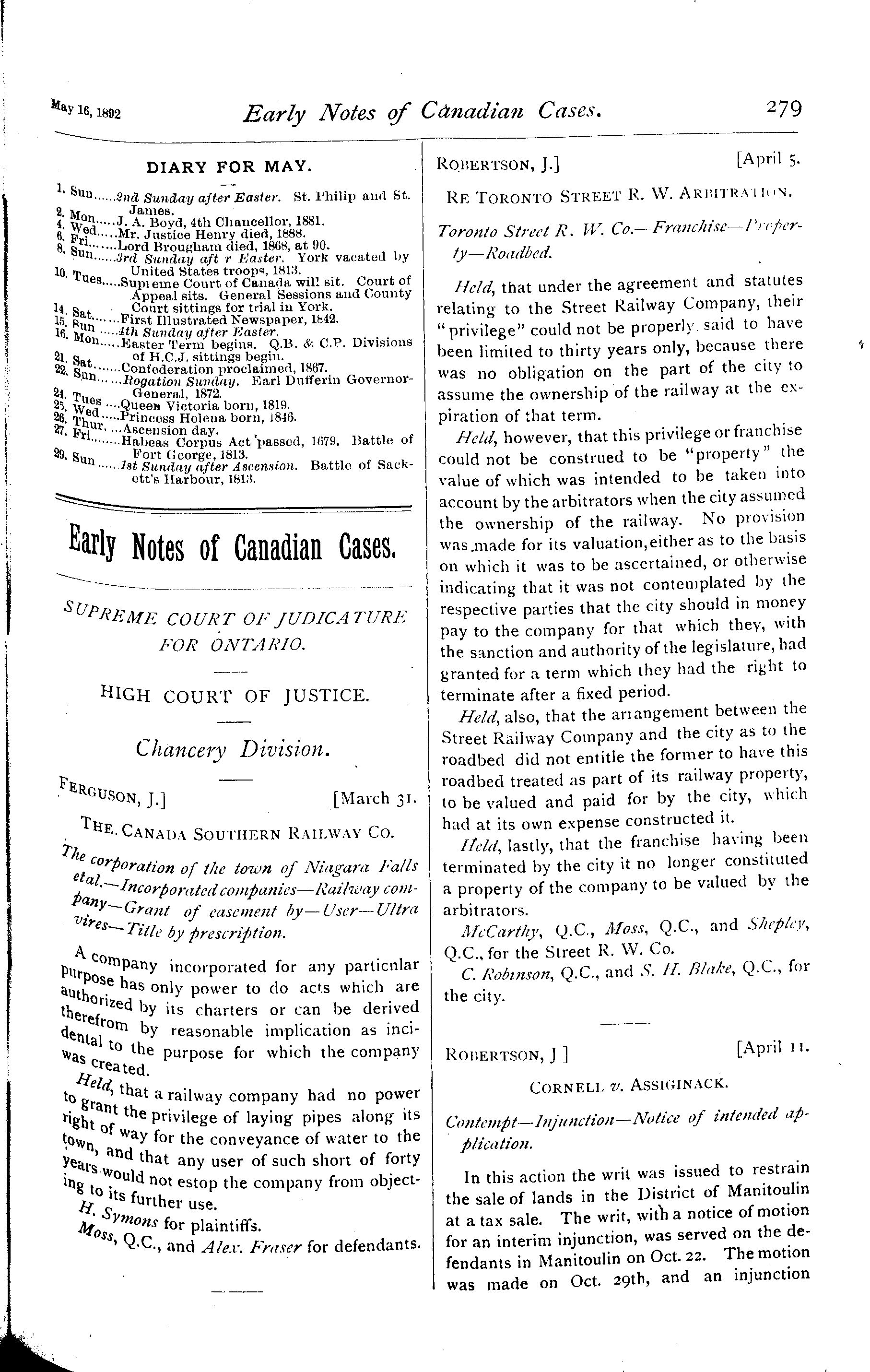 - The Canada law journal [Vol. 28, no. 9 (May 16, 1892)]