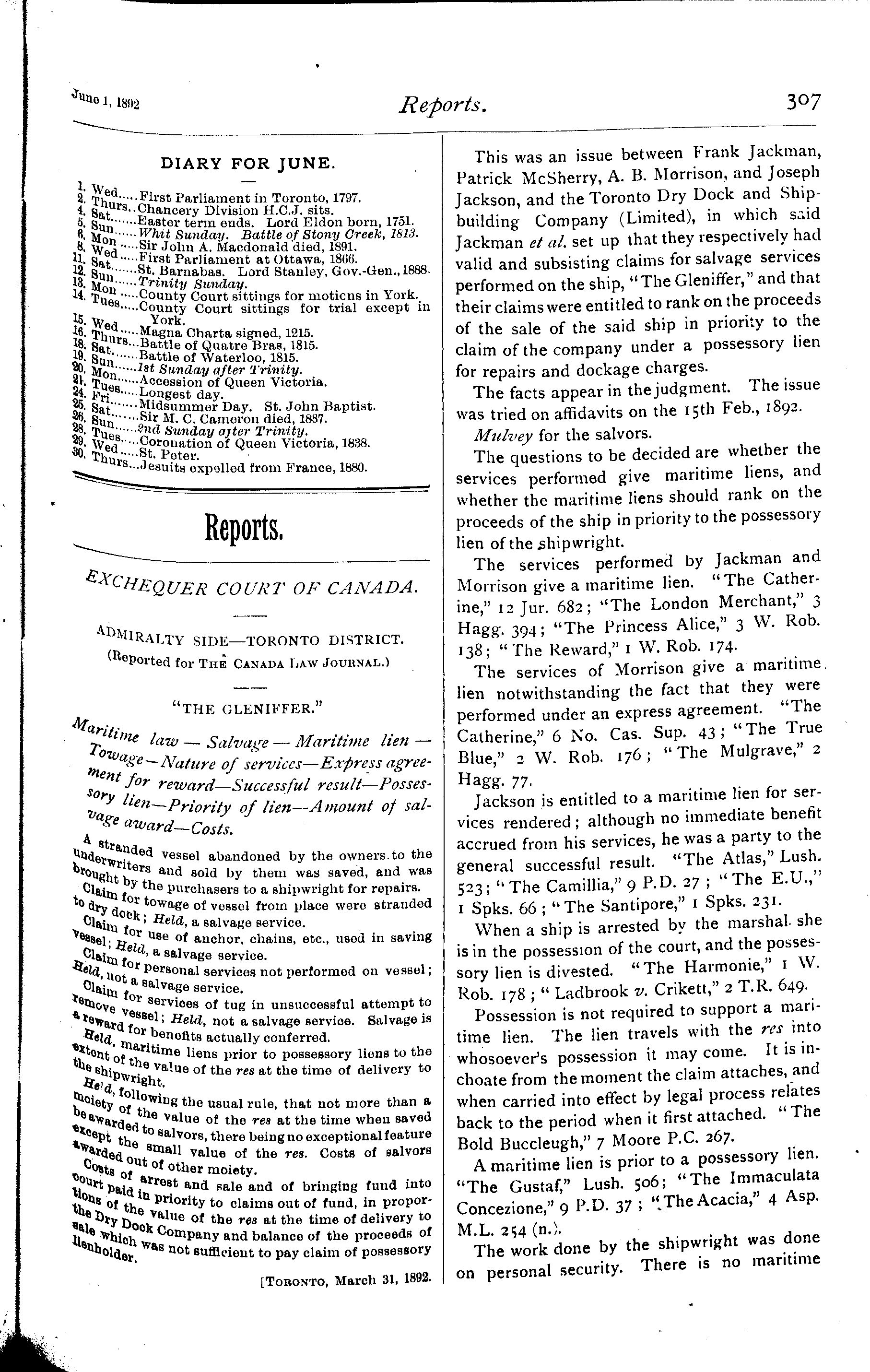 The Canada law journal [Vol. 28, no. 10 (June 1, 1892)]