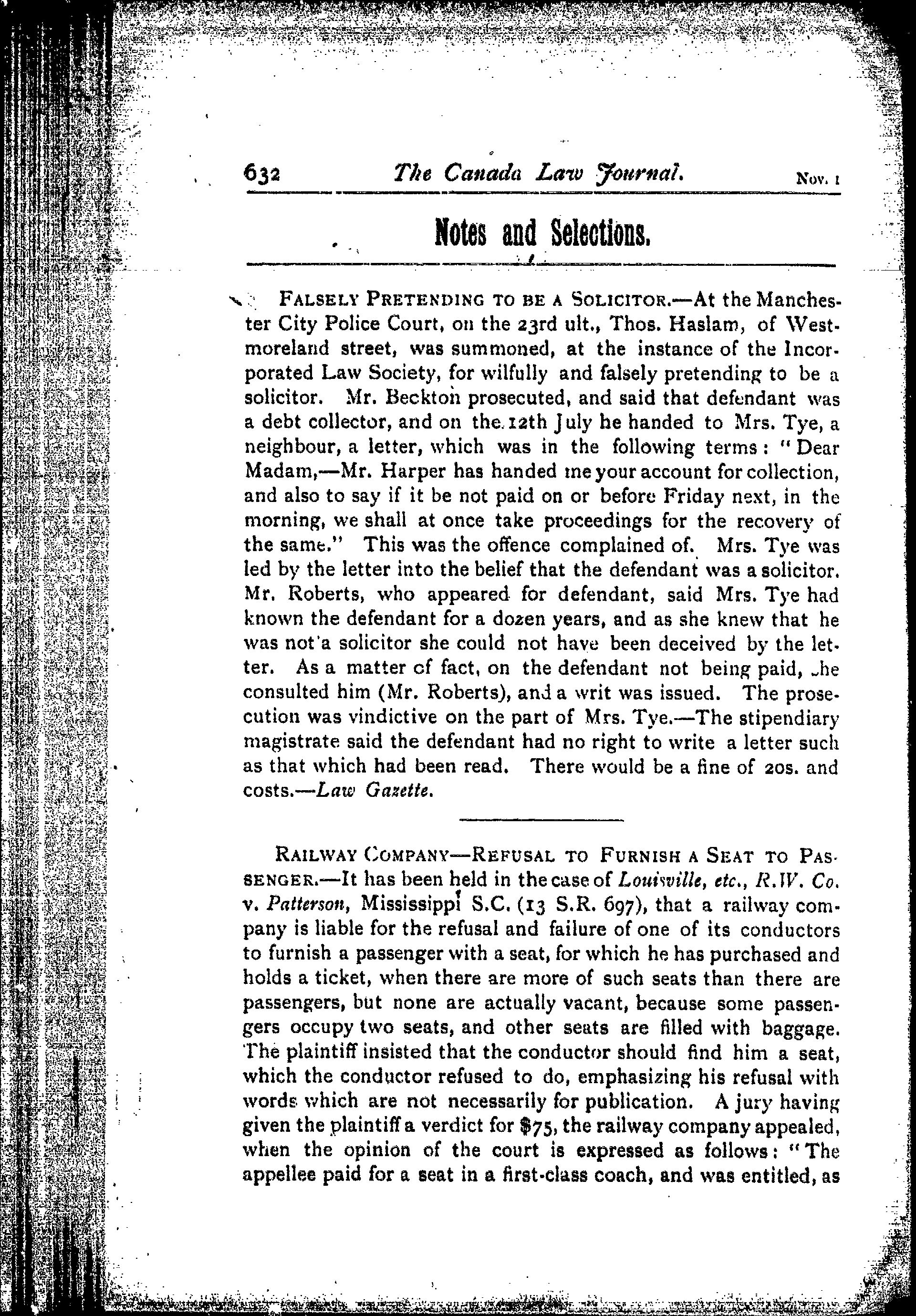 - The Canada law journal [Vol. 29, no. 17 (Nov. 1, 1893)]