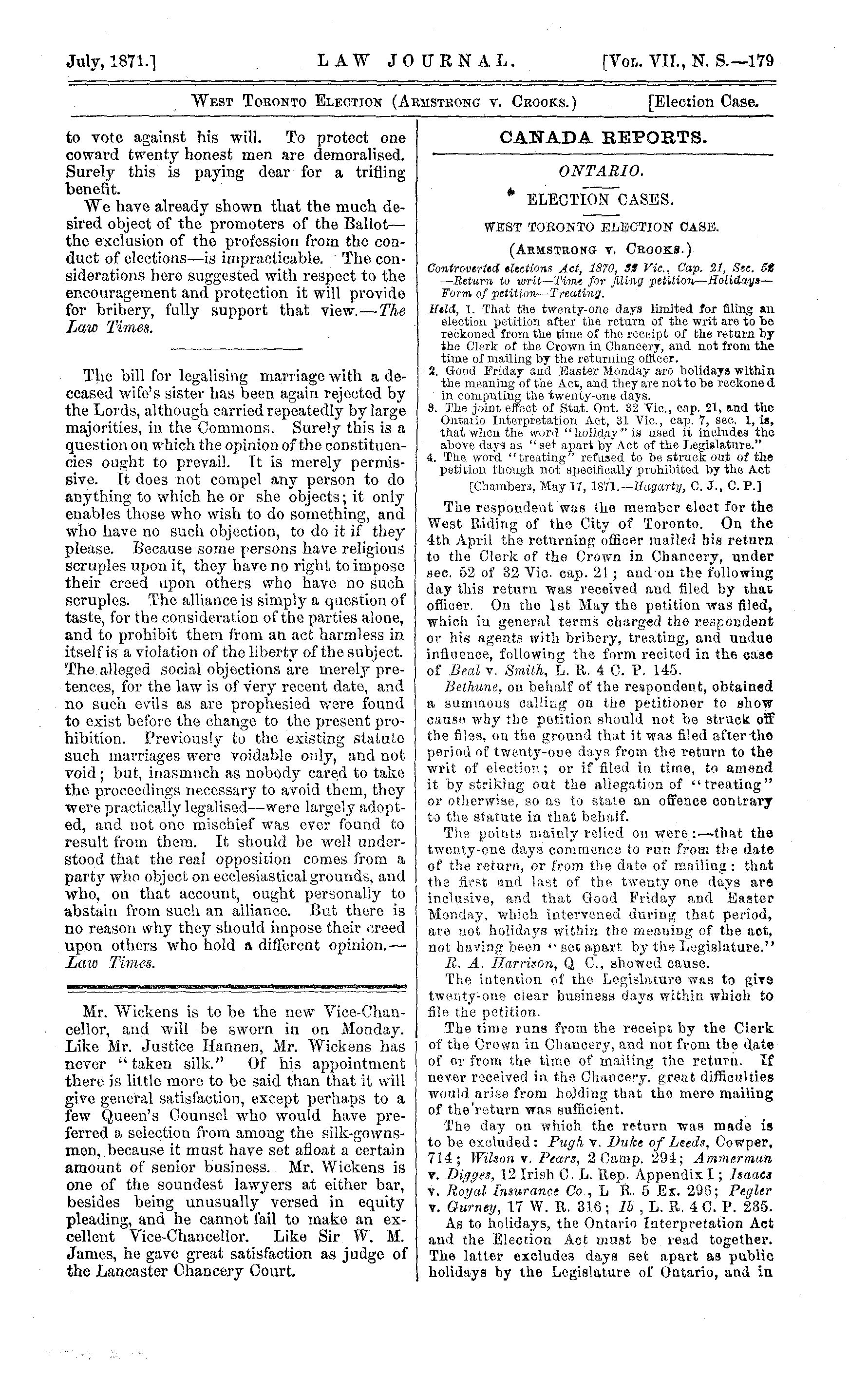 The Canada law journal [New ser. v. 7, [no. 7] (July 1871)]