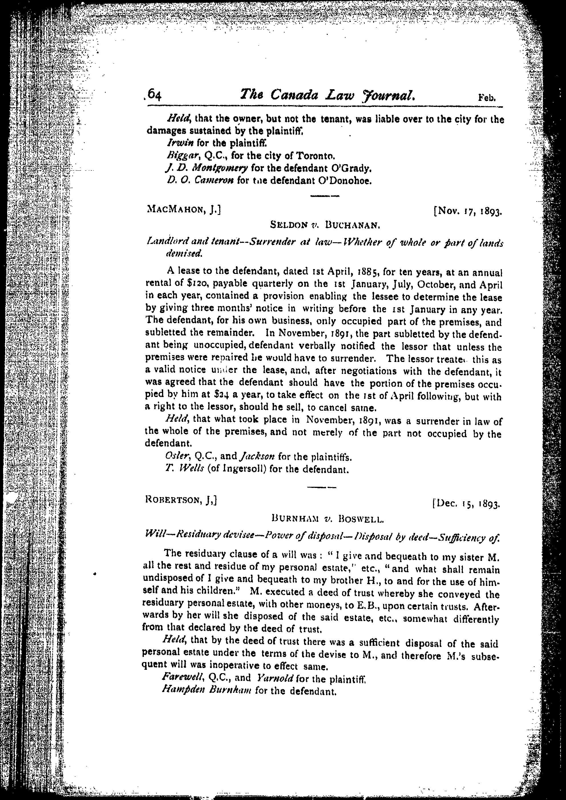 - The Canada law journal [Vol. 30, no. 2 (Feb. 1, 1894)]