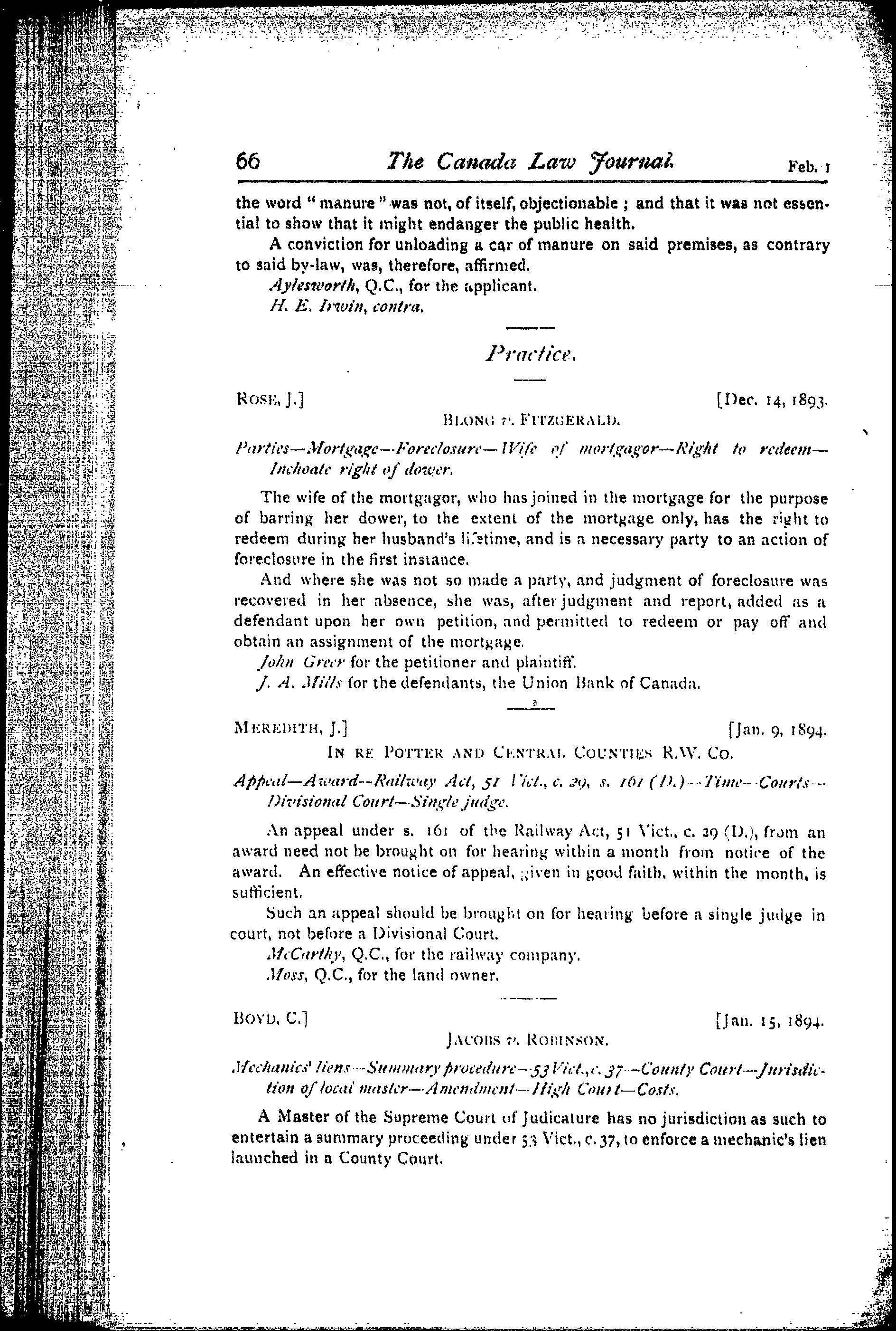- The Canada law journal [Vol. 30, no. 2 (Feb. 1, 1894)]