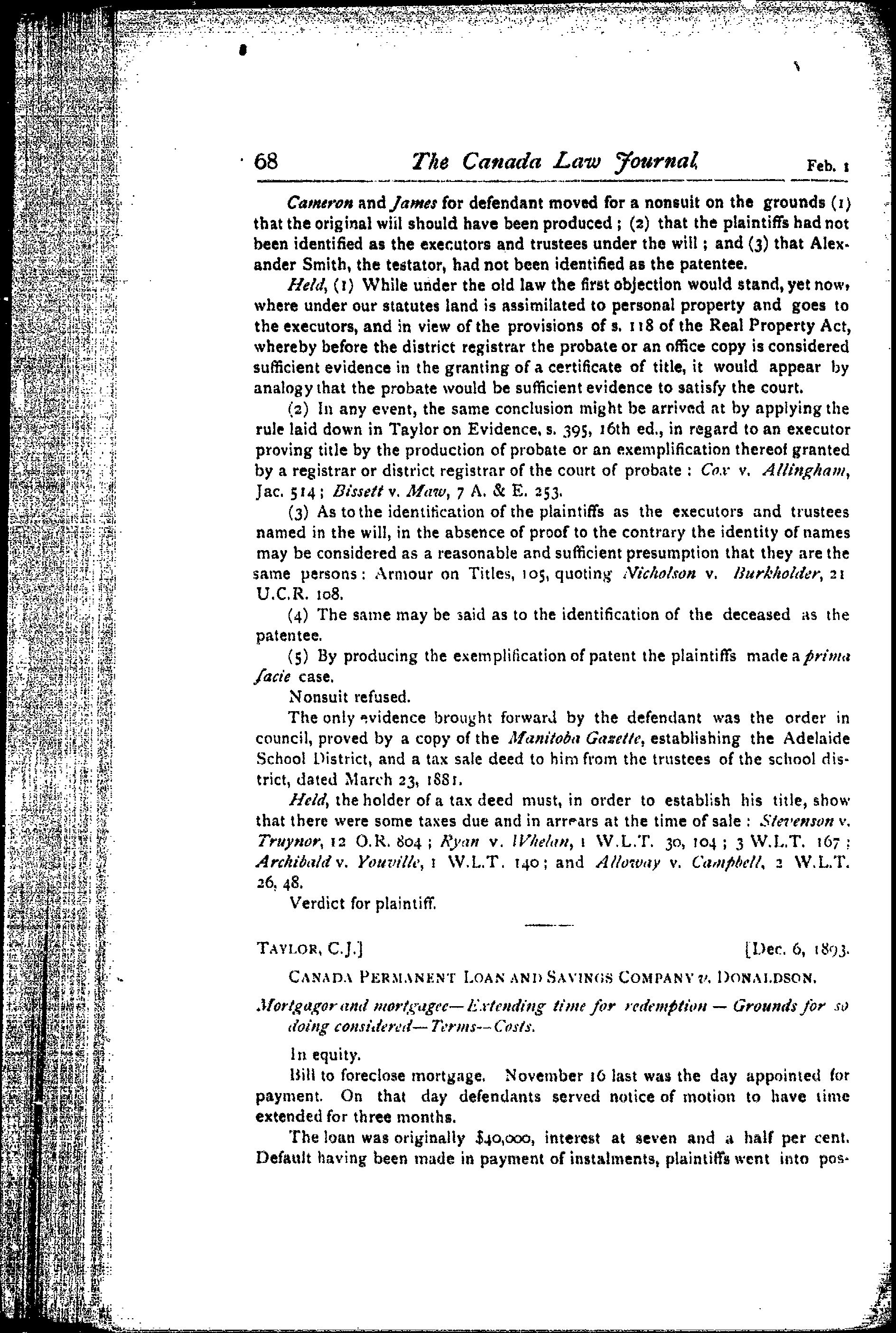 The Canada law journal : [Vol. 30, no. 2 (Feb. 1, 1894)]