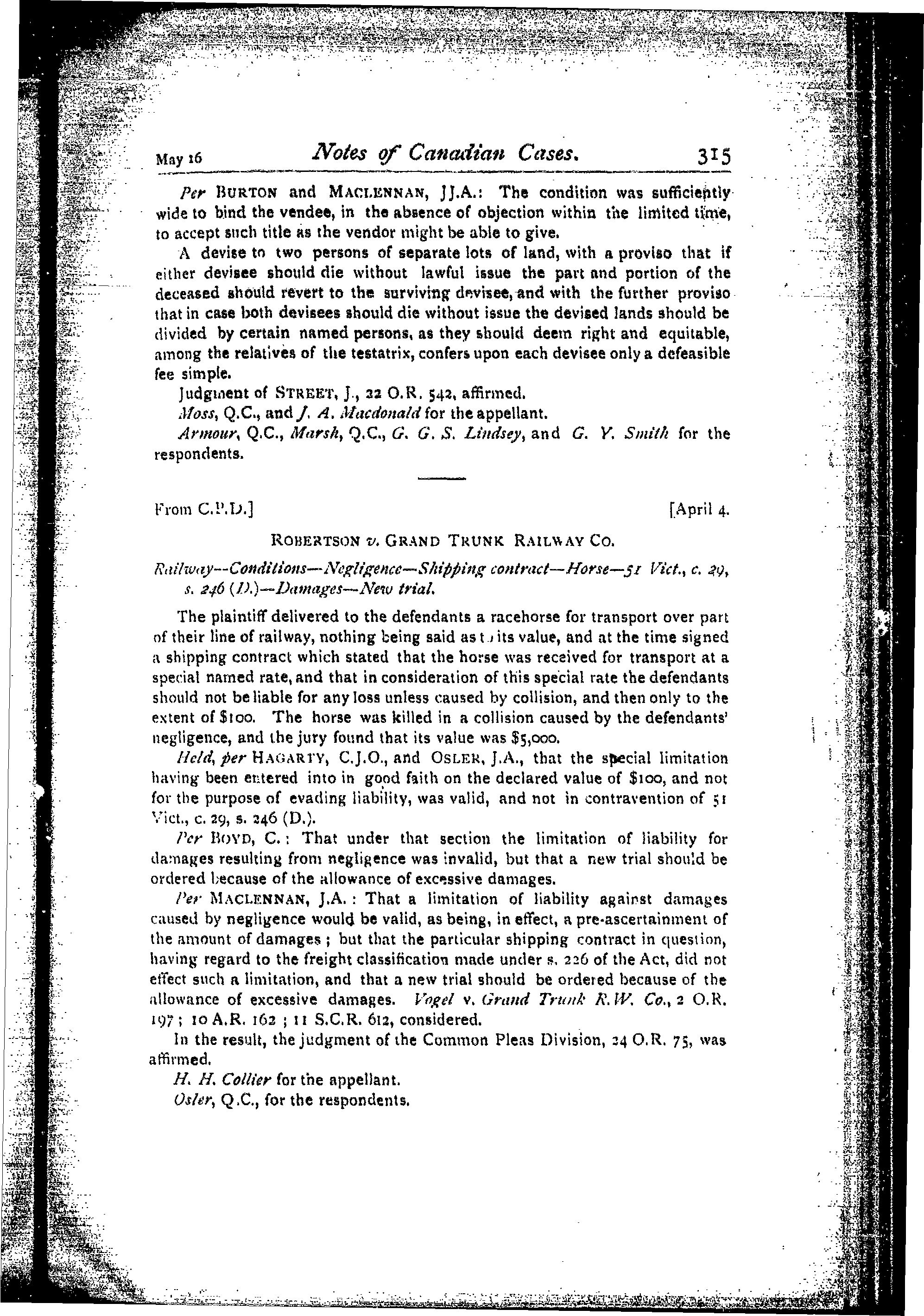 - The Canada law journal [Vol. 30, no. 9 (May 16, 1894)]