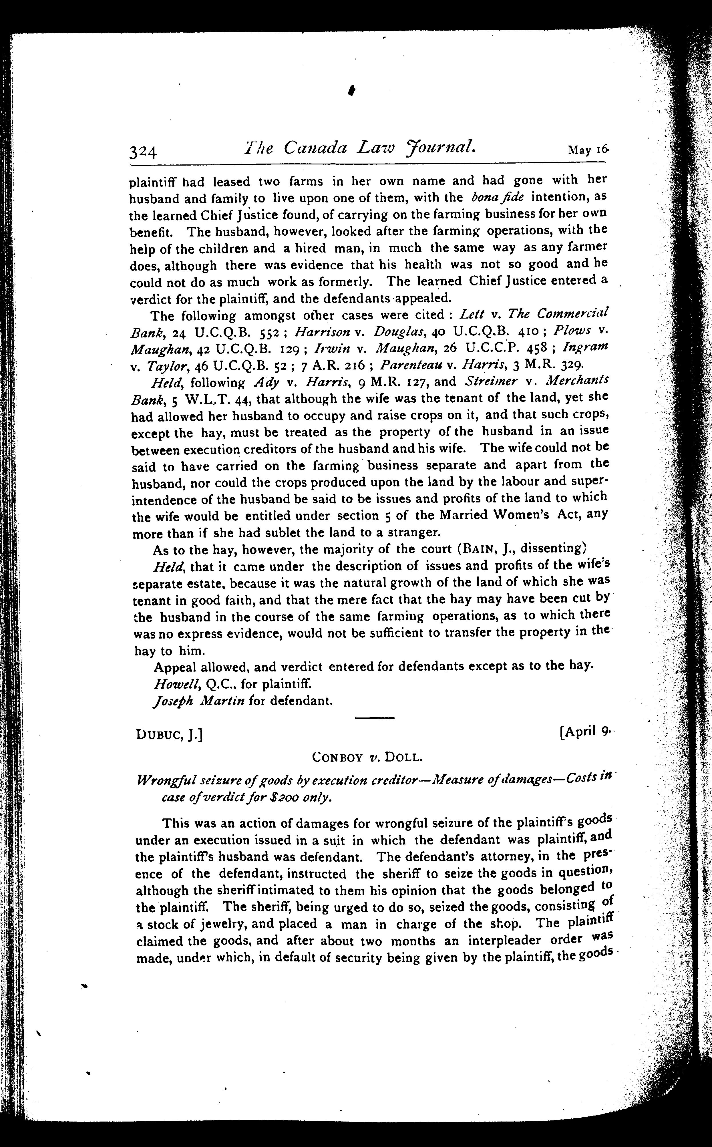 The Canada law journal [Vol. 30, no. 9 (May 16, 1894)]