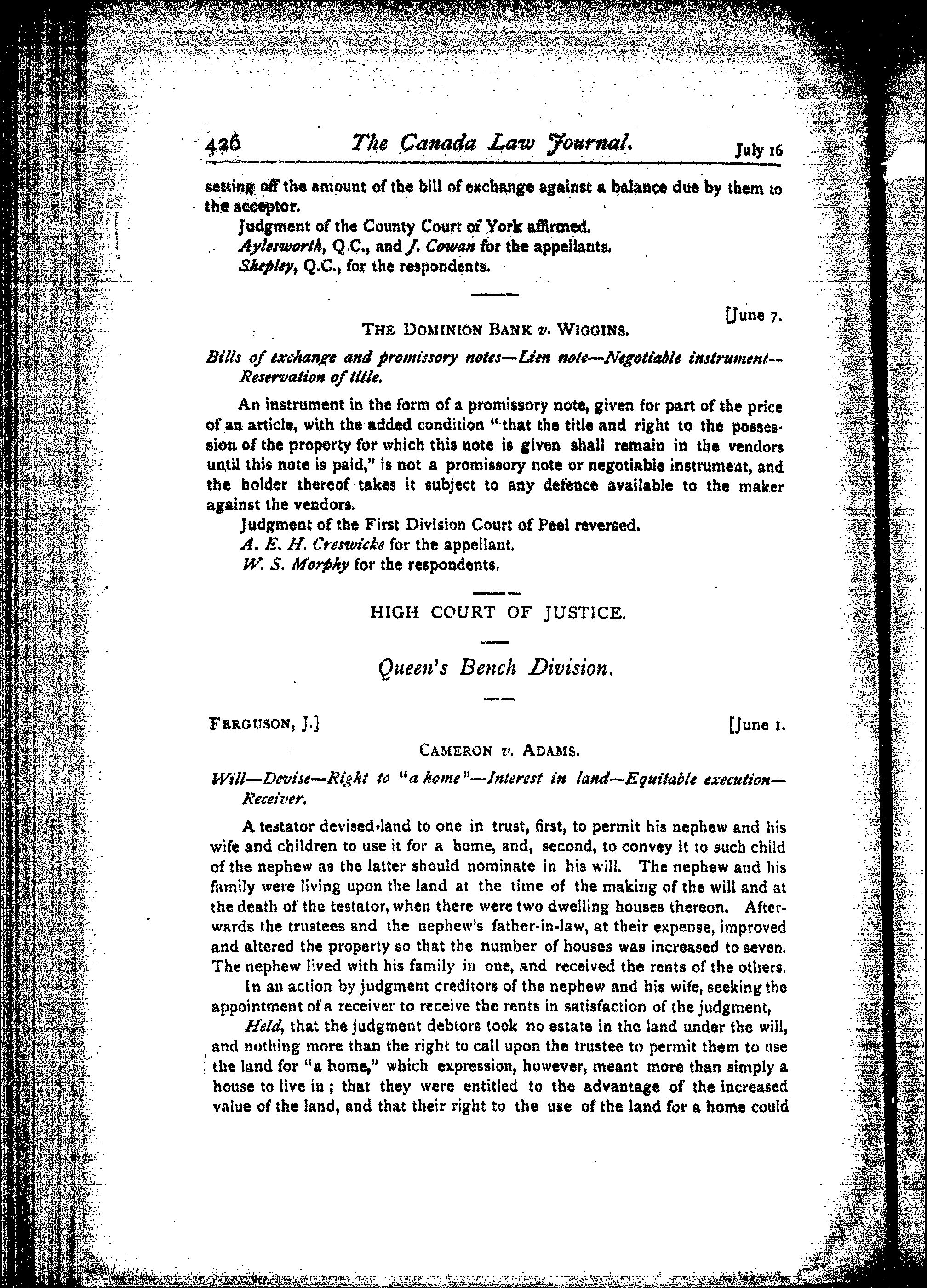 - The Canada law journal [Vol. 30, no. 12 (July 16, 1894)]