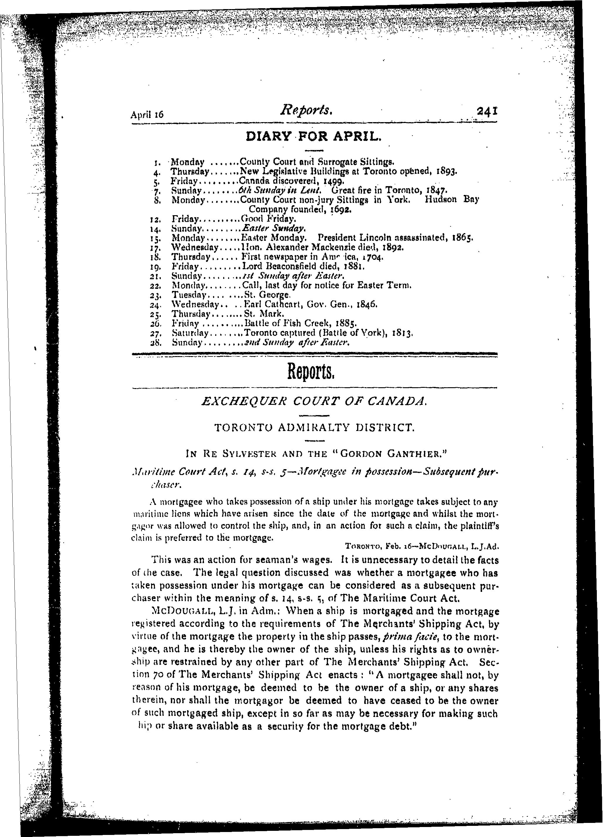 The Canada law journal [Vol. 31, no. 7 (Apr. 16, 1895)]