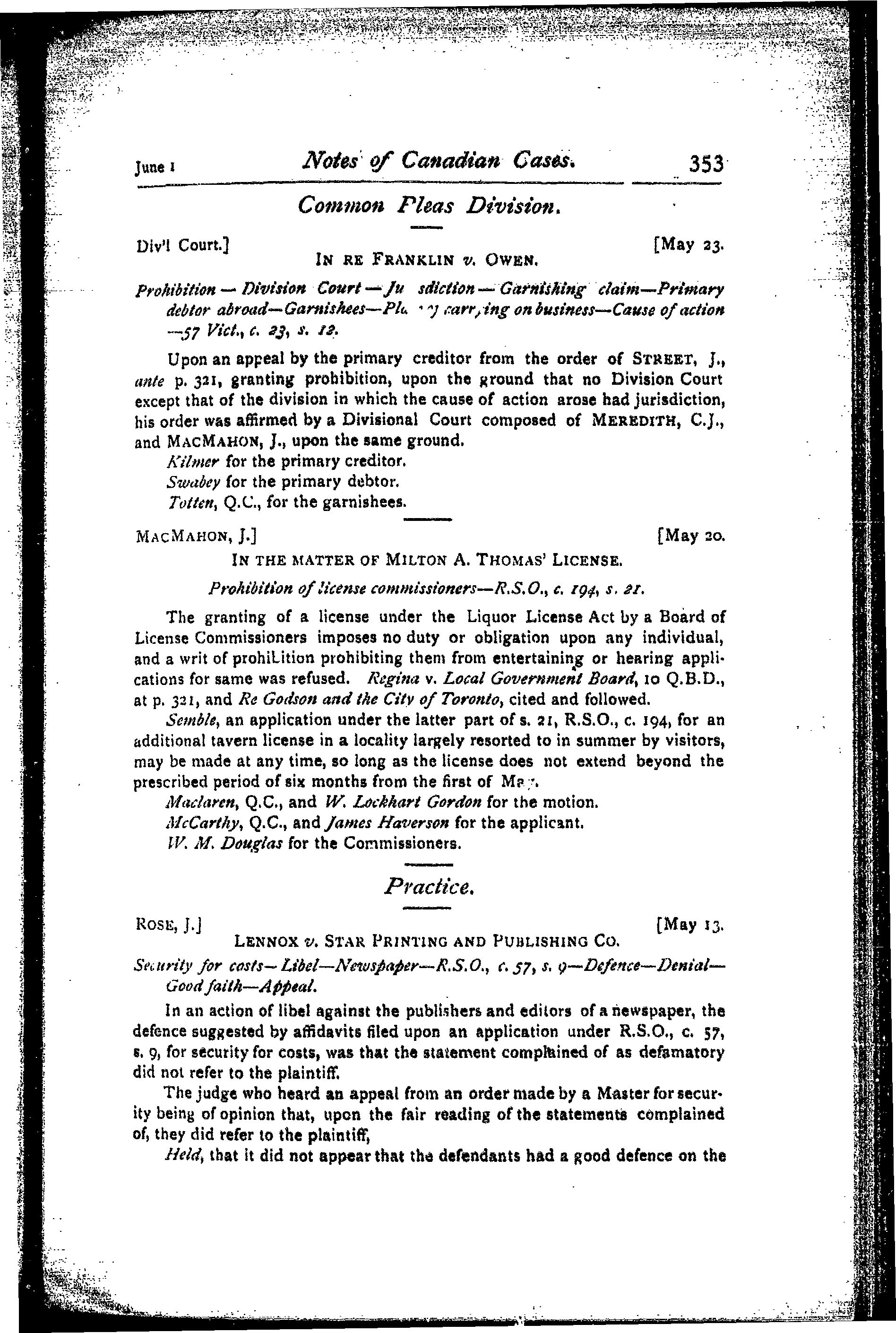 - The Canada law journal [Vol. 31, no. 10 (June 1, 1895)]