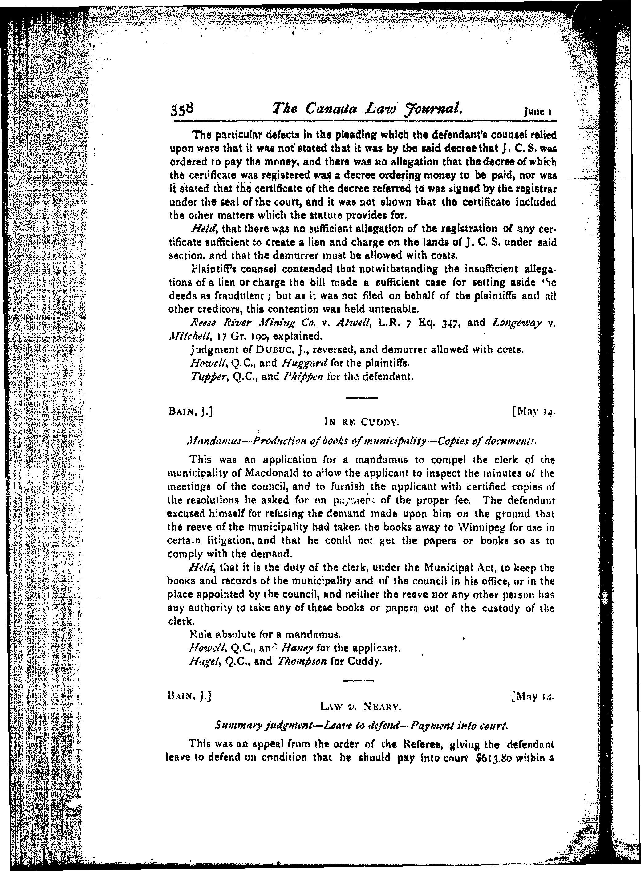 The Canada law journal [Vol. 31, no. 10 (June 1, 1895)]
