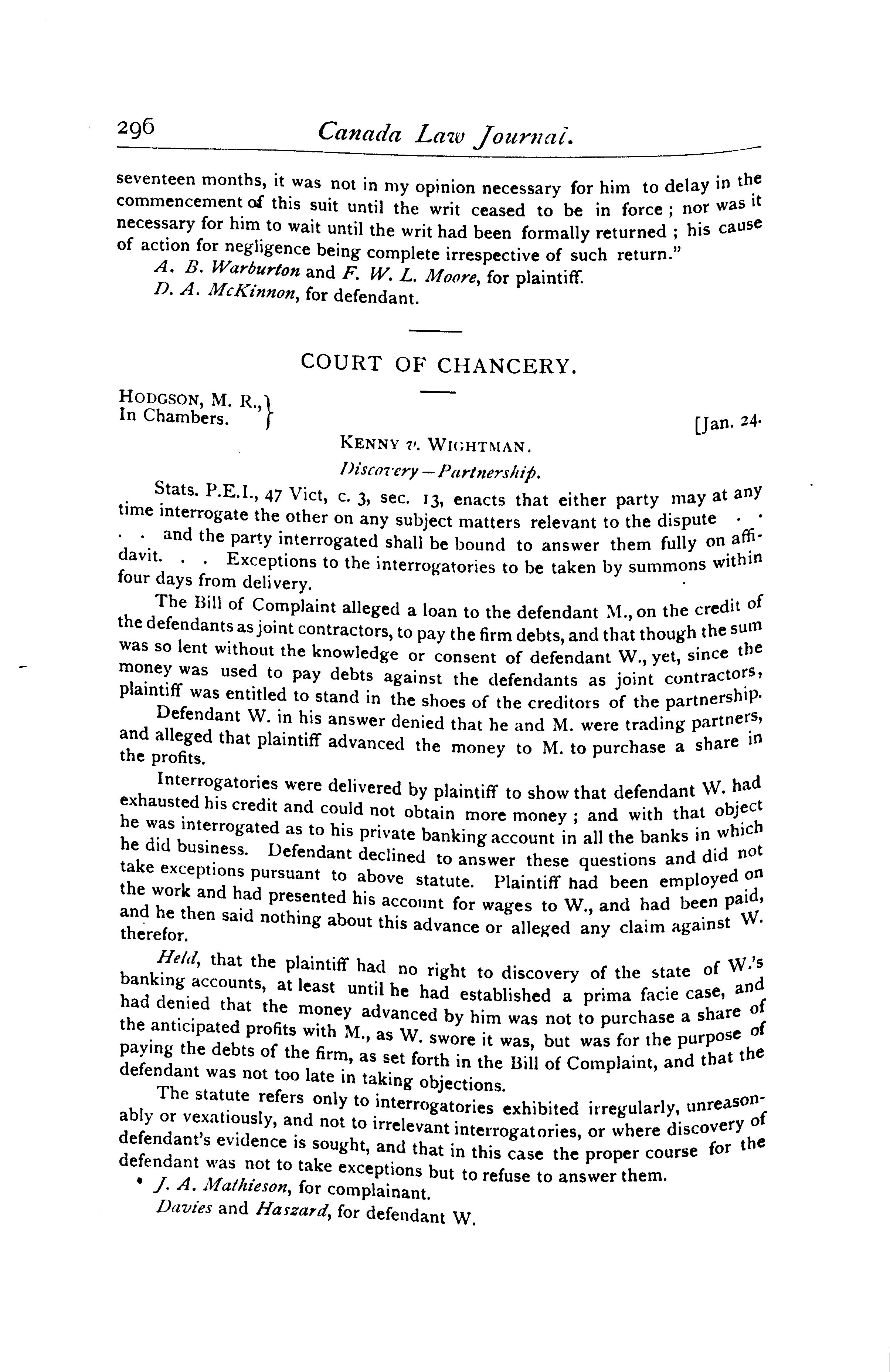 Canada law journal [Vol. 32, no. 7 (Apr. 16, 1896)]
