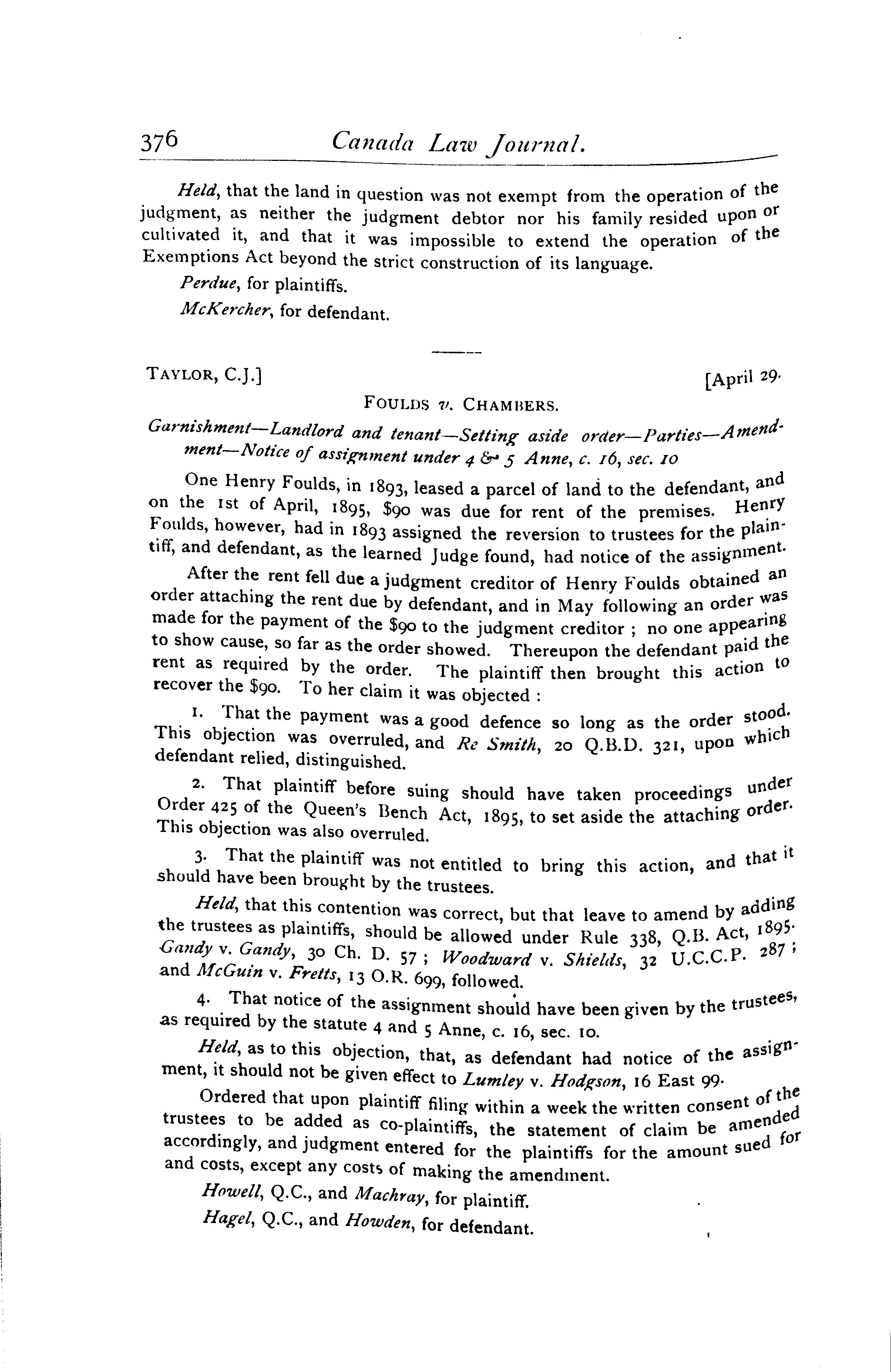 Canada law journal [Vol. 32, no. 9 (May 15, 1896)]