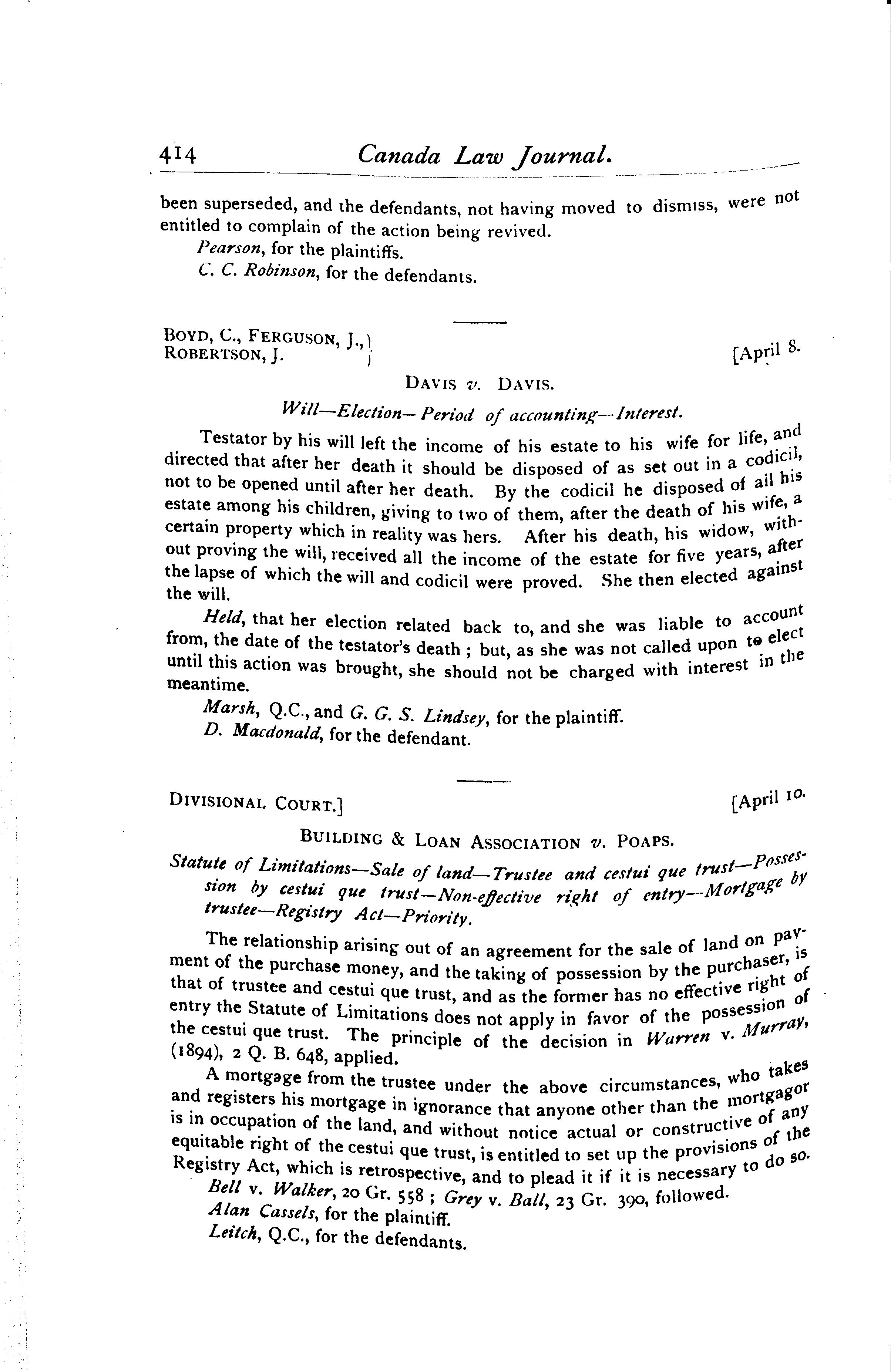 Toronto : [Canada Law Journal Co., 1896]; 40 images with full-text search