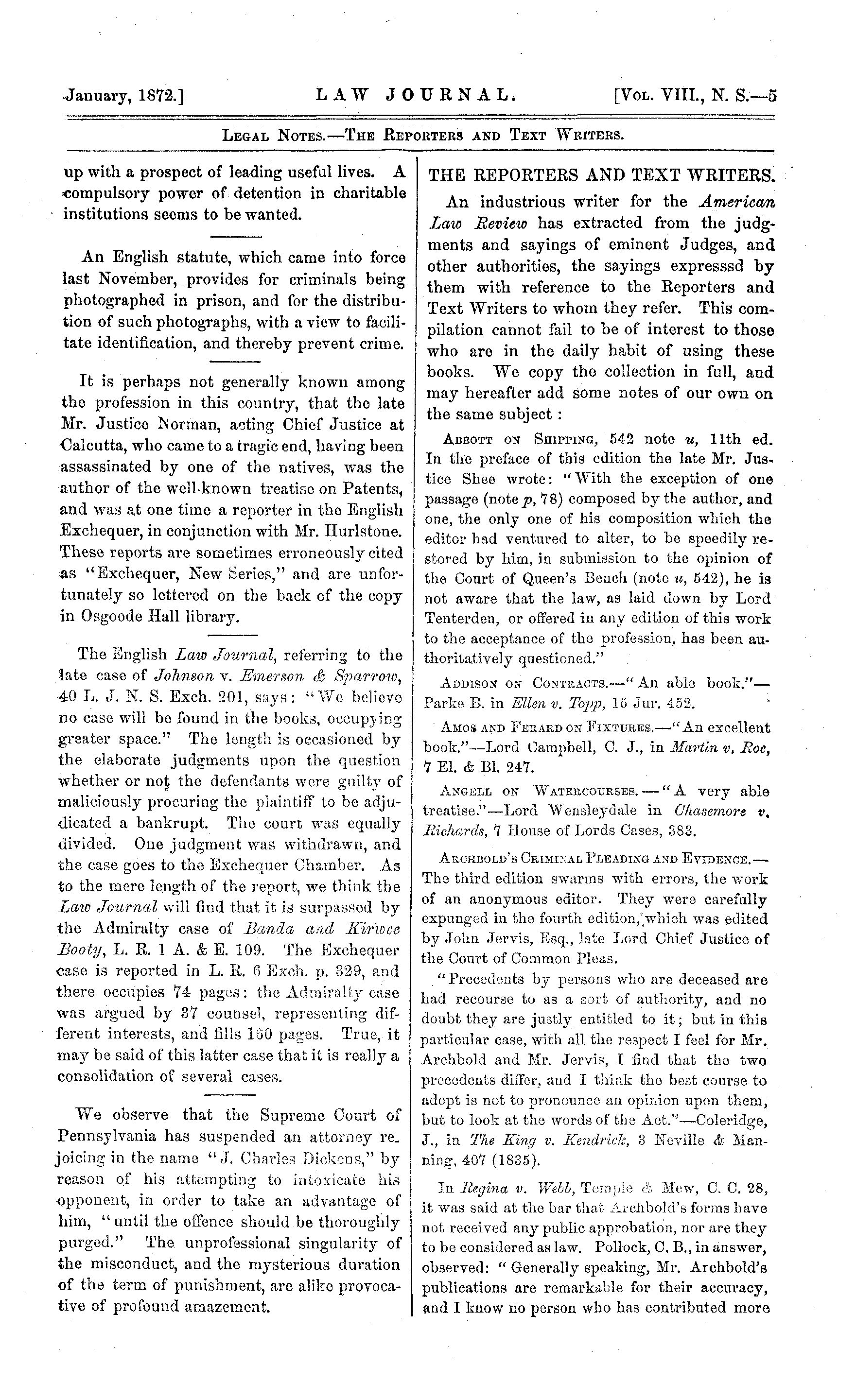 - The Canada law journal [New ser. v. 8, [no. 1] (Jan. 1872)]