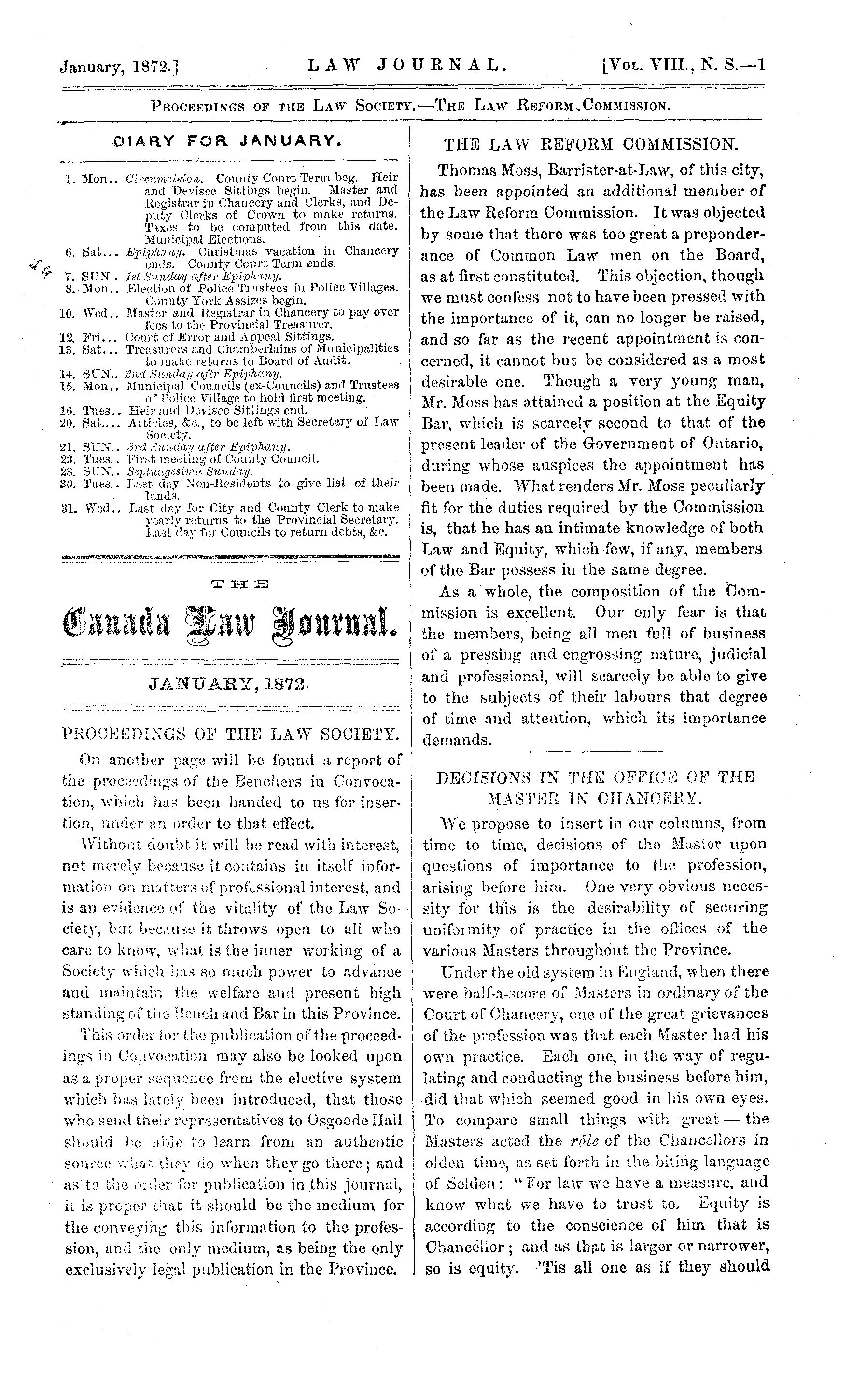 - The Canada law journal [New ser. v. 8, [no. 1] (Jan. 1872)]