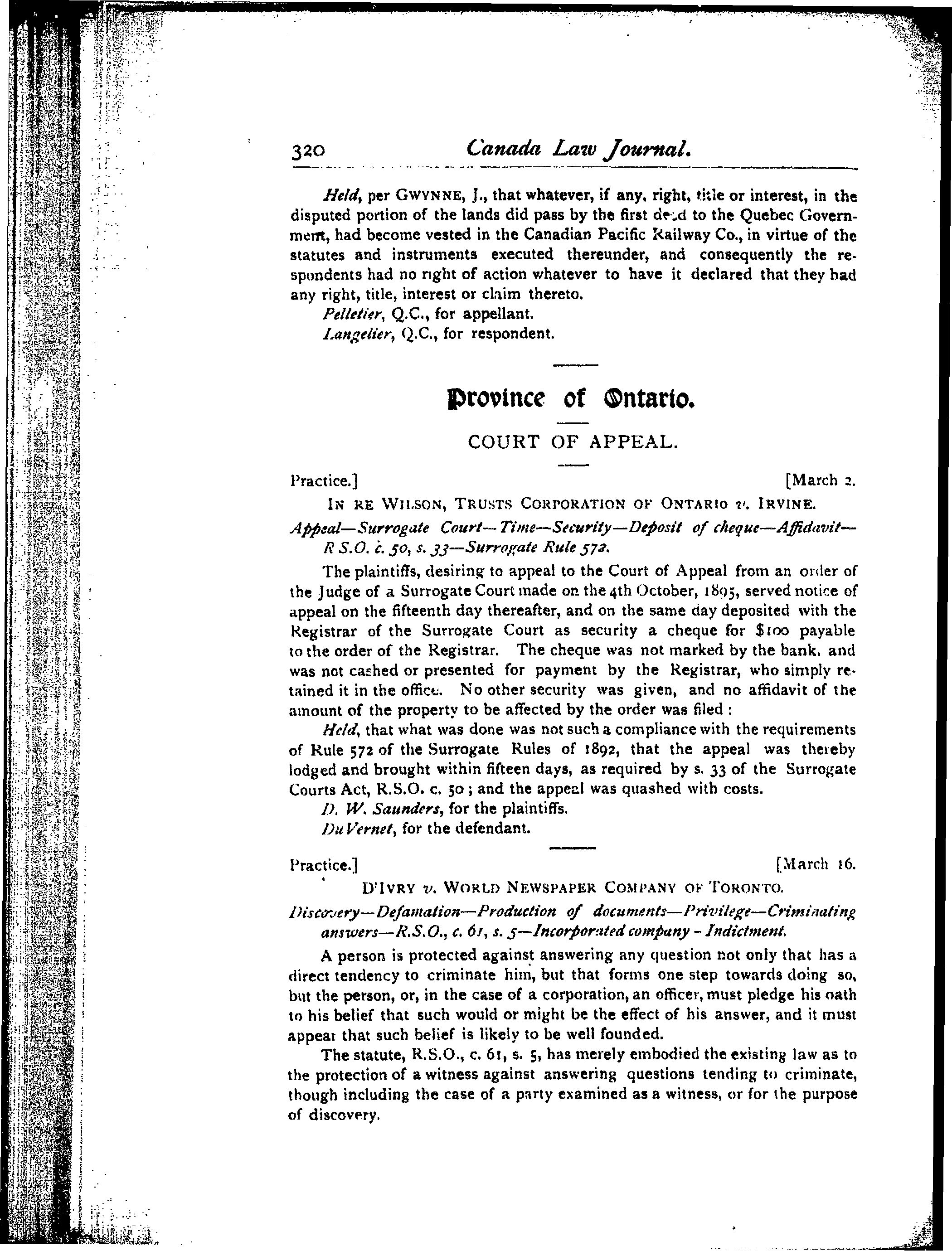 [Toronto : Canada Law Journal Co., 1897]; 32 images avec recherche en texte intégral