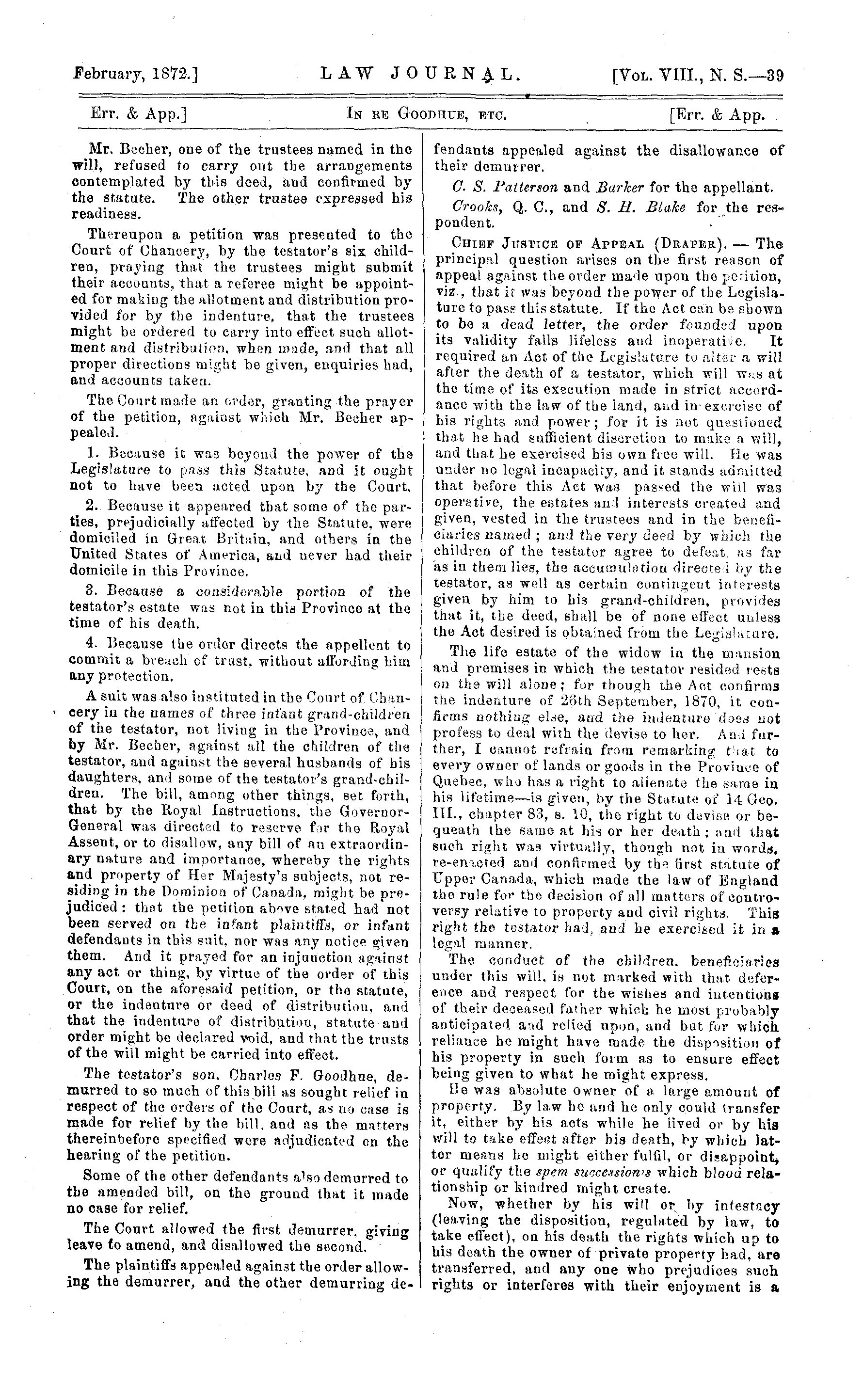 The Canada law journal [New ser. v. 8, [no. 2] (Feb. 1872)]