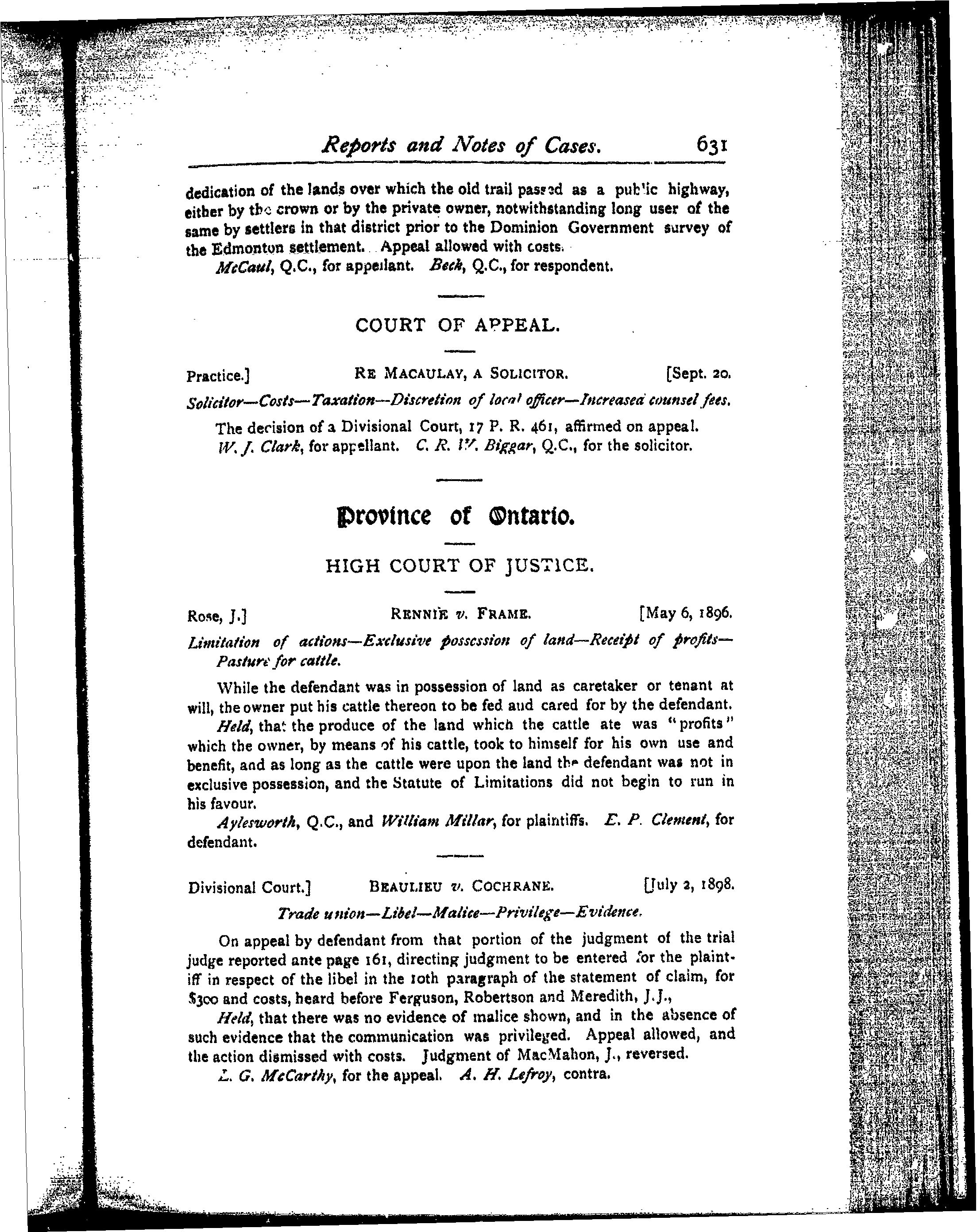 [Toronto : Canada Law Journal Co., 1898]; 60 images avec recherche en texte intégral
