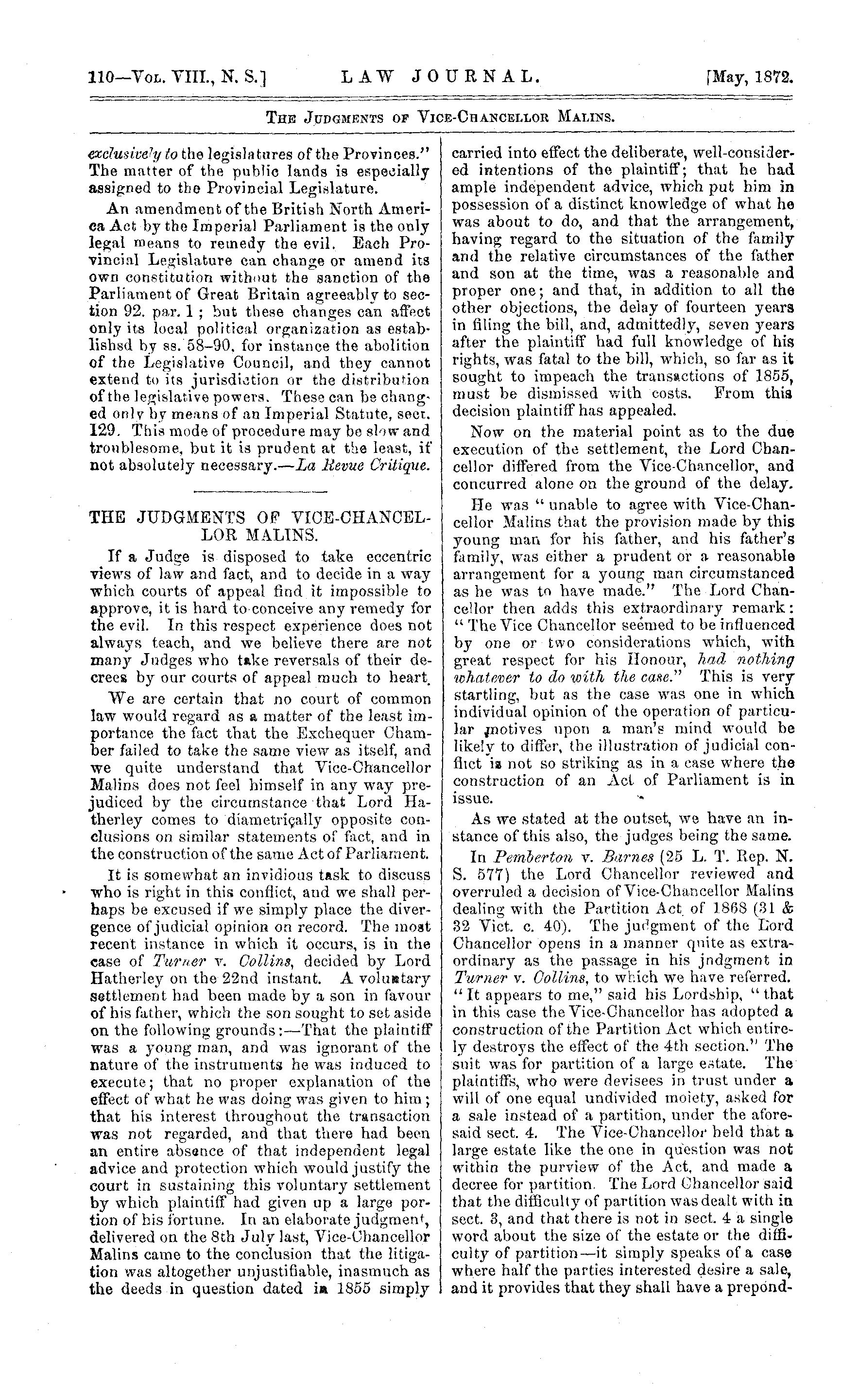 The Canada law journal [New ser. v. 8, [no. 5] (May 1872)]