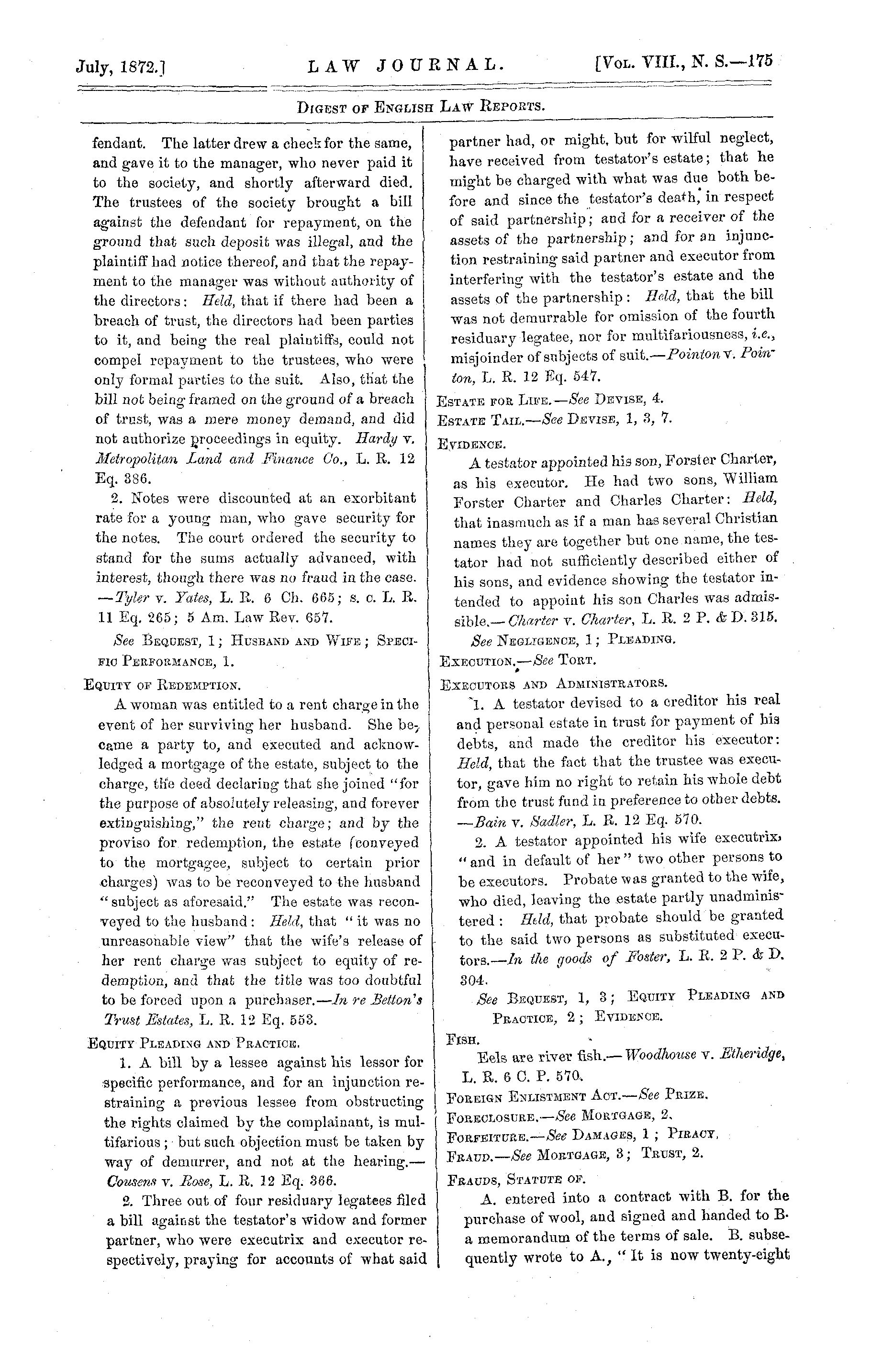 The Canada law journal [New ser. v. 8, [no. 7] (July 1872)]