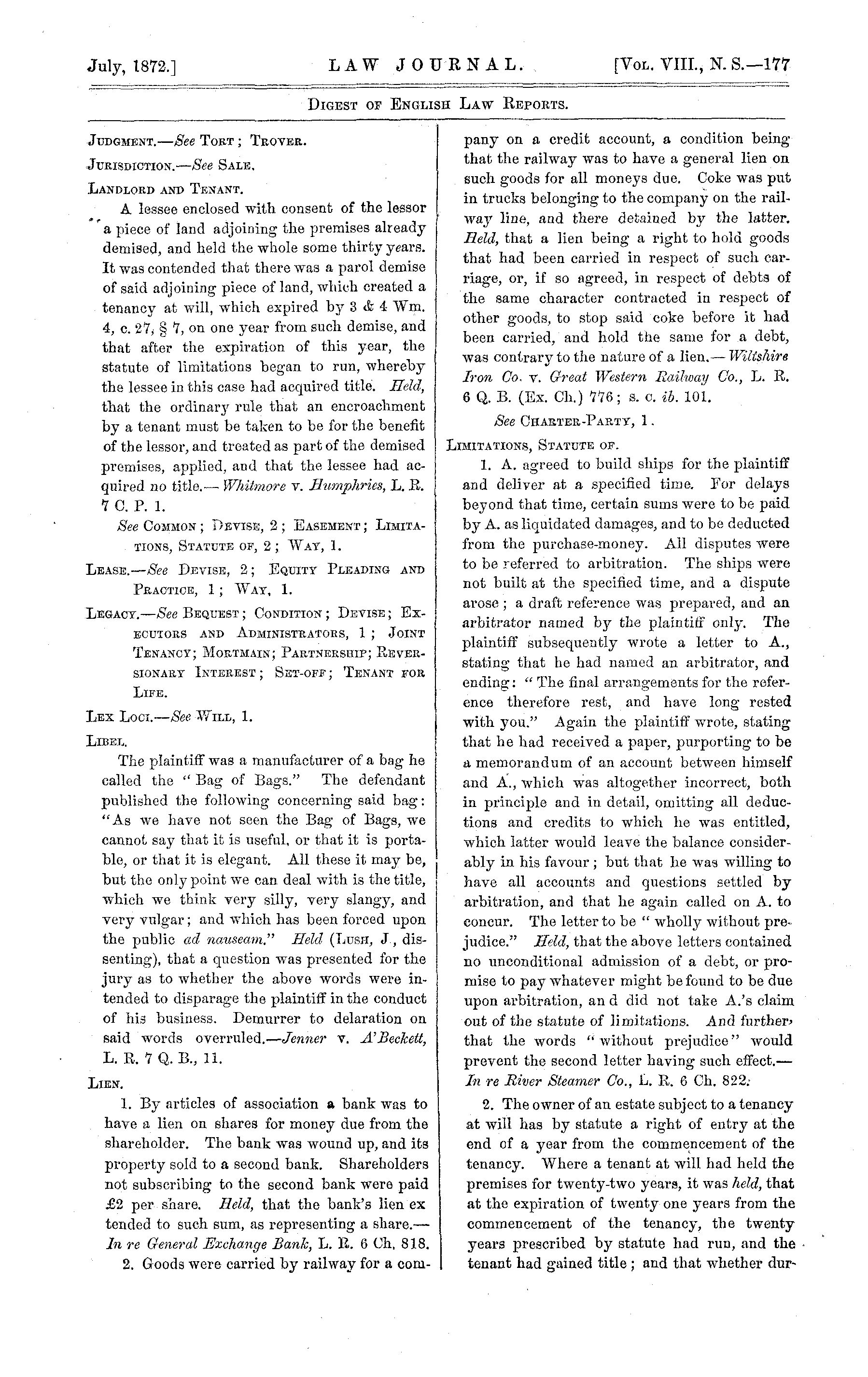 - The Canada law journal [New ser. v. 8, [no. 7] (July 1872)]