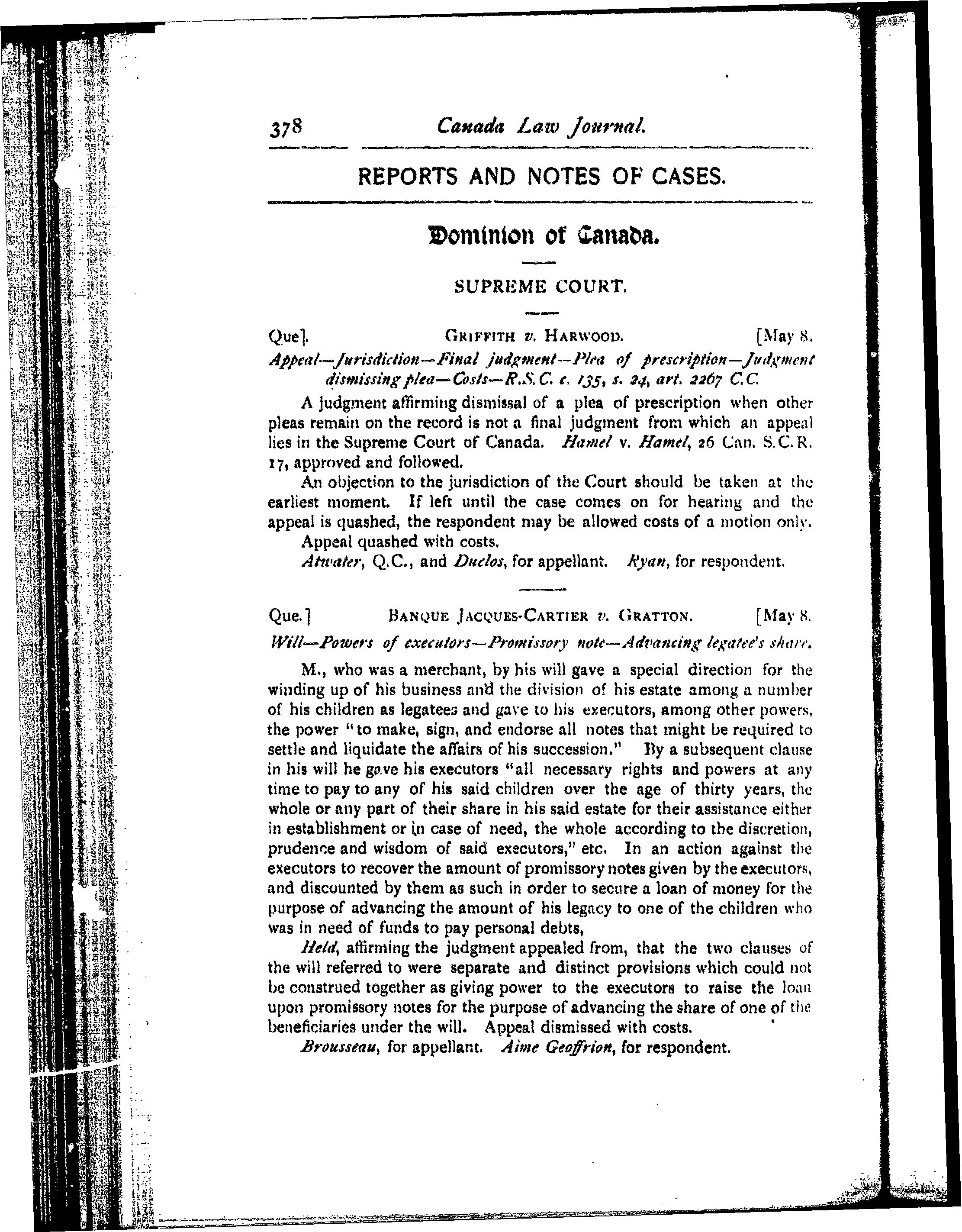 - Canada law journal [Vol. 36, no. 12 (June 15, 1900)]