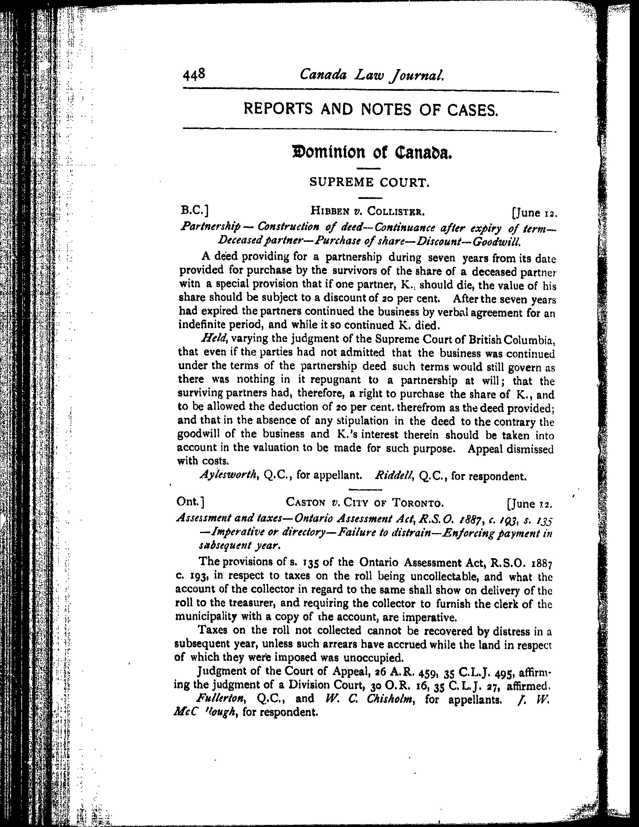 - Canada law journal [Vol. 36, no. 15/16 (Aug. 1900)]