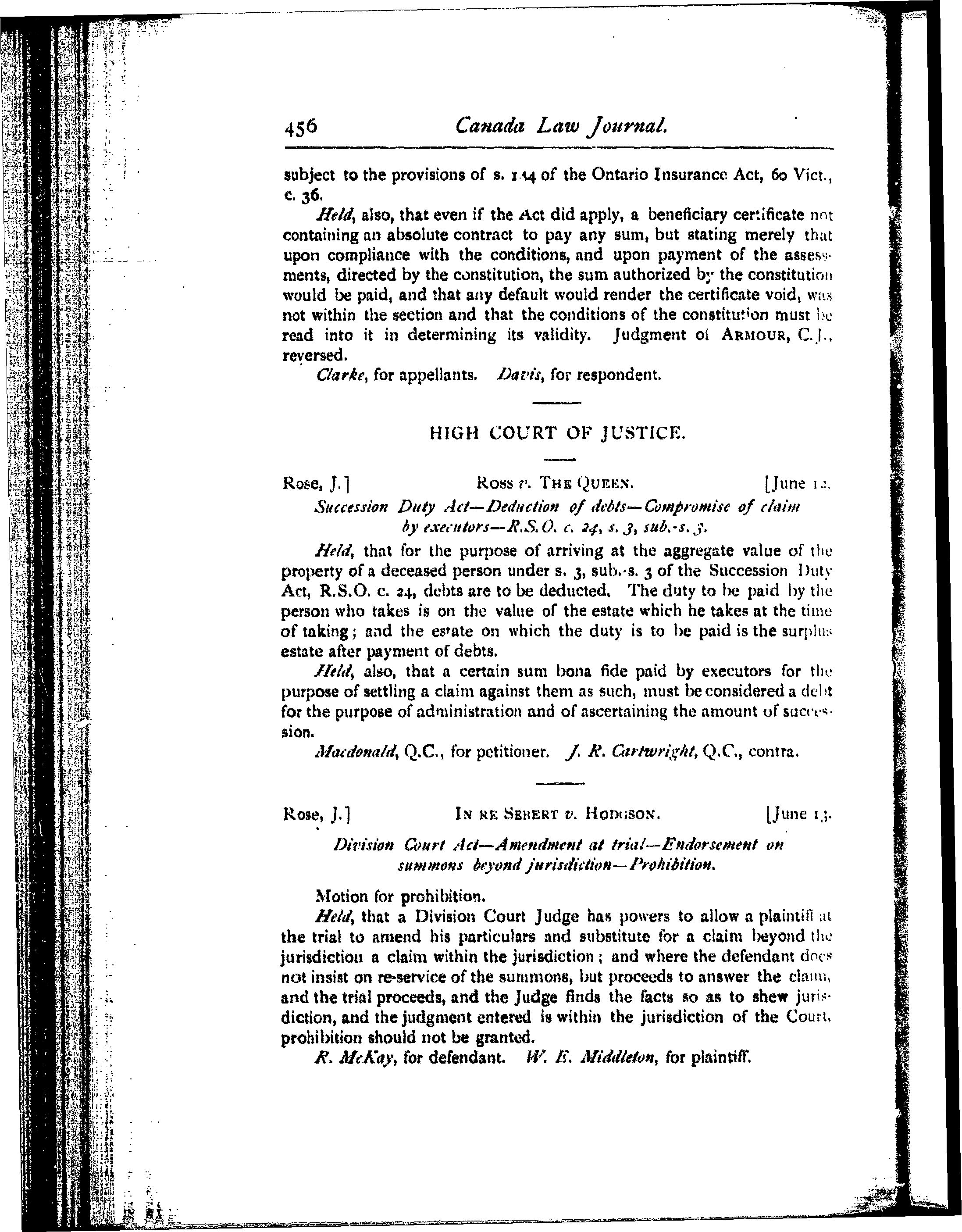 - Canada law journal [Vol. 36, no. 15/16 (Aug. 1900)]