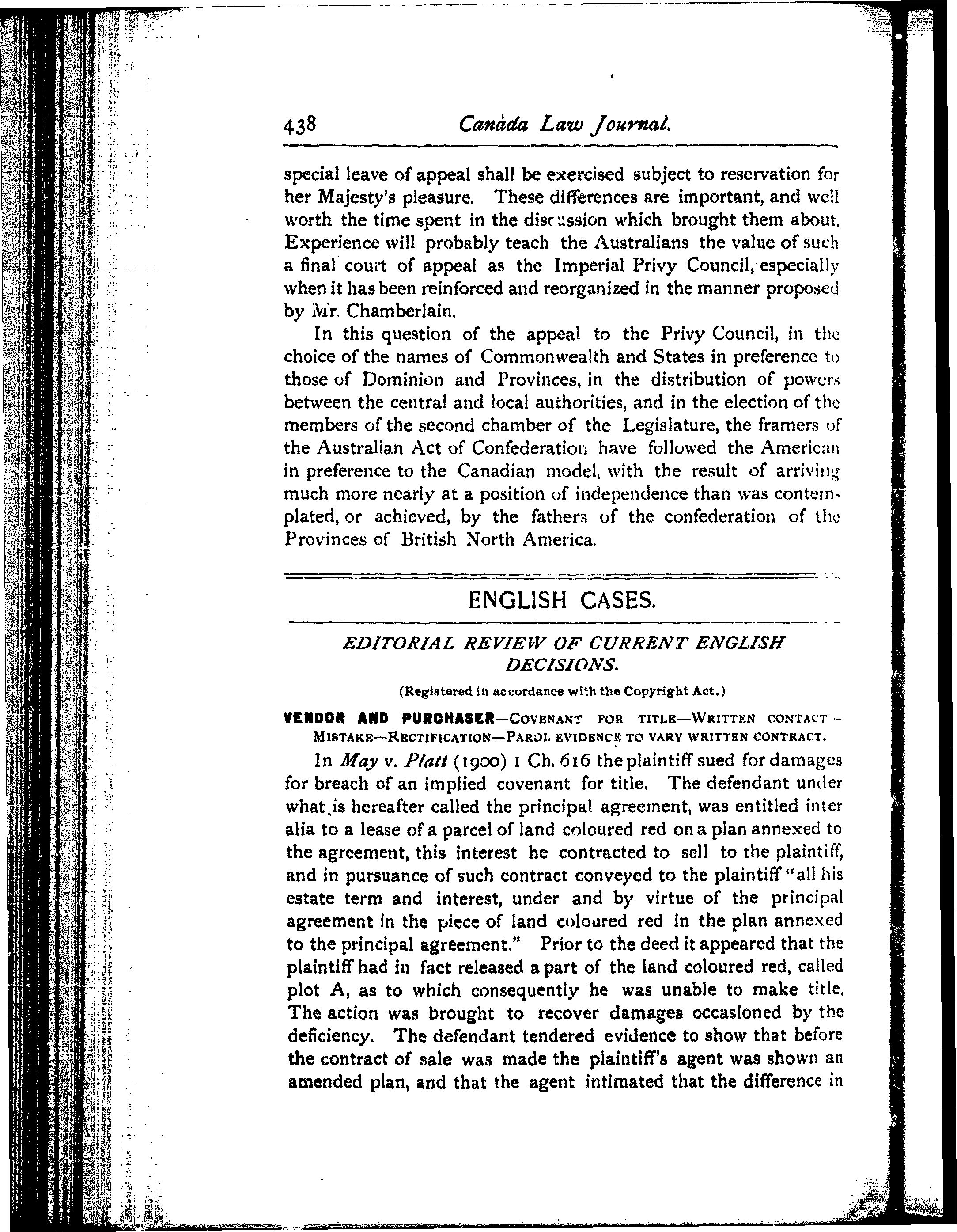 - Canada law journal [Vol. 36, no. 15/16 (Aug. 1900)]