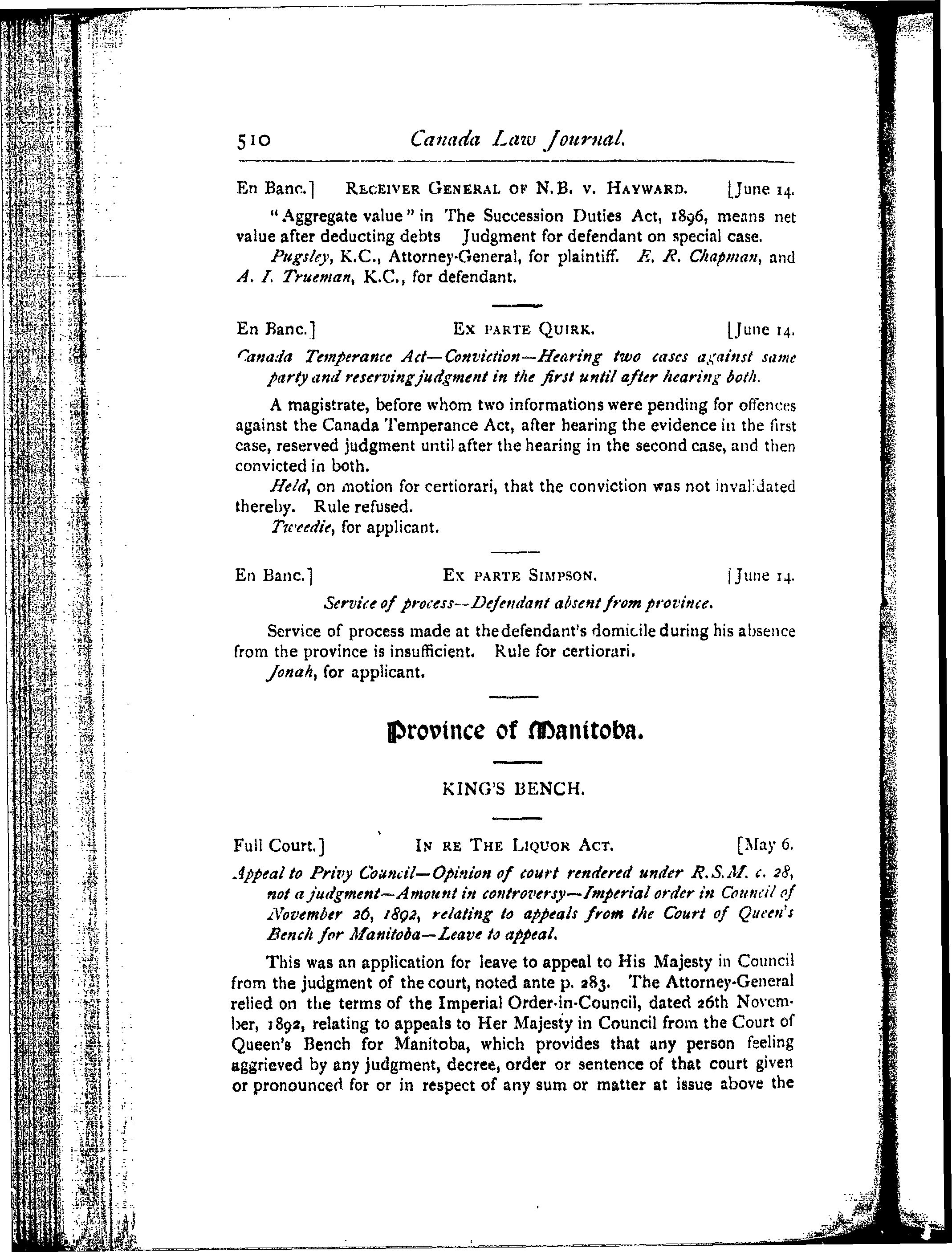 [Toronto : Canada Law Book Co., 1901]; 40 images avec recherche en texte intégral