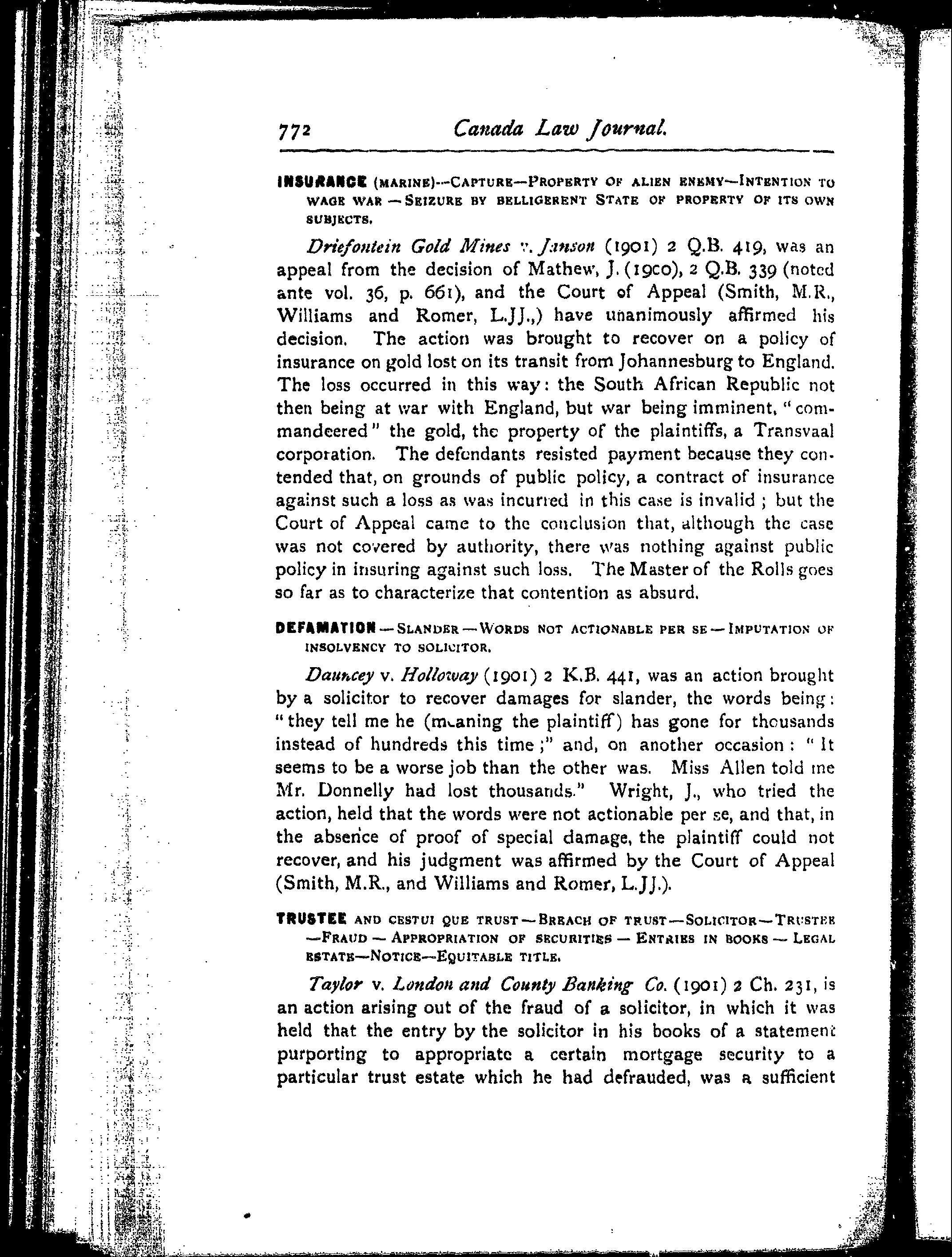 Canada law journal [Vol. 37, no. 20 (Nov. 1, 1901)]