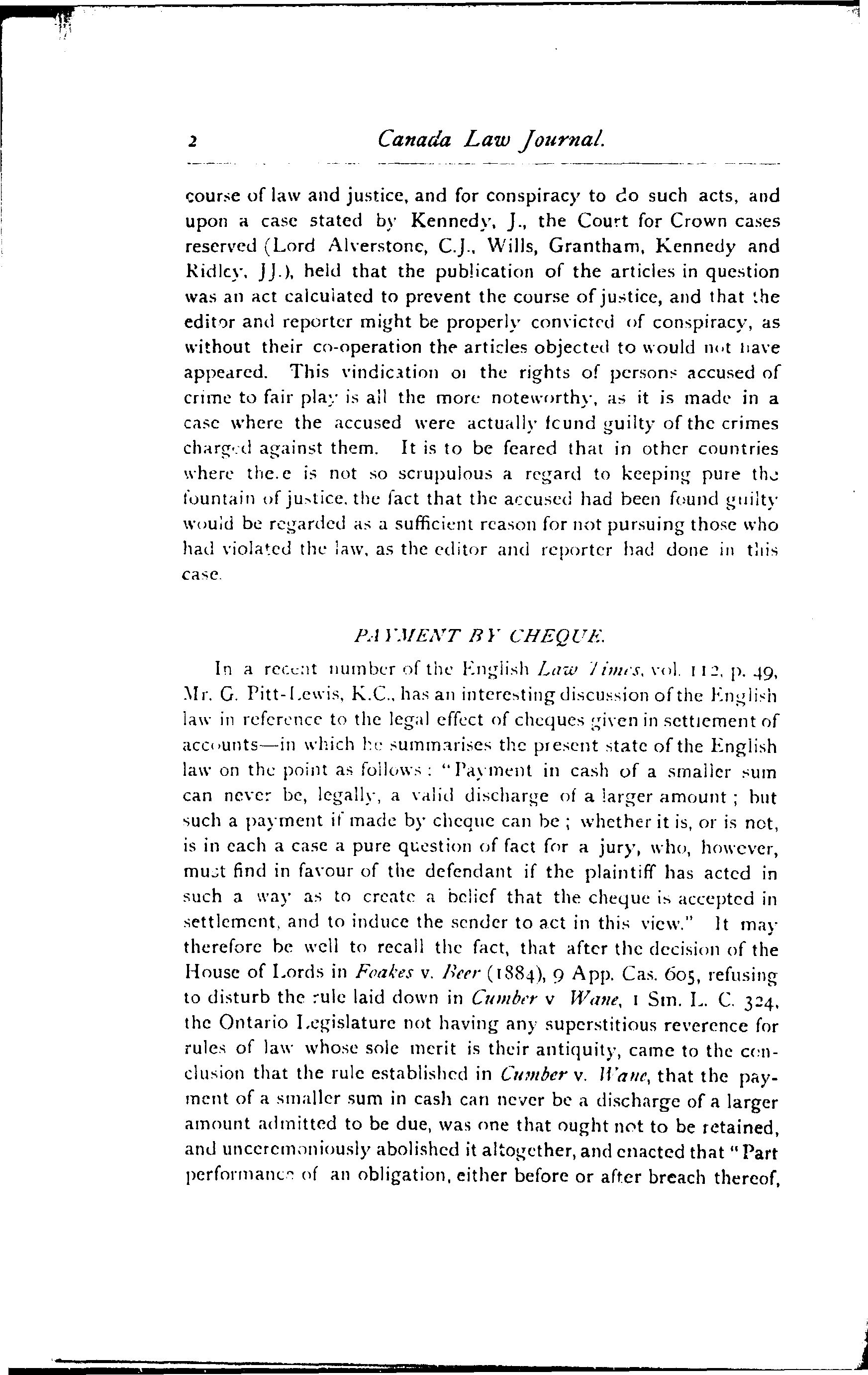 Canada law journal [Vol. 38, no. 1/2 (Jan. 1902)]