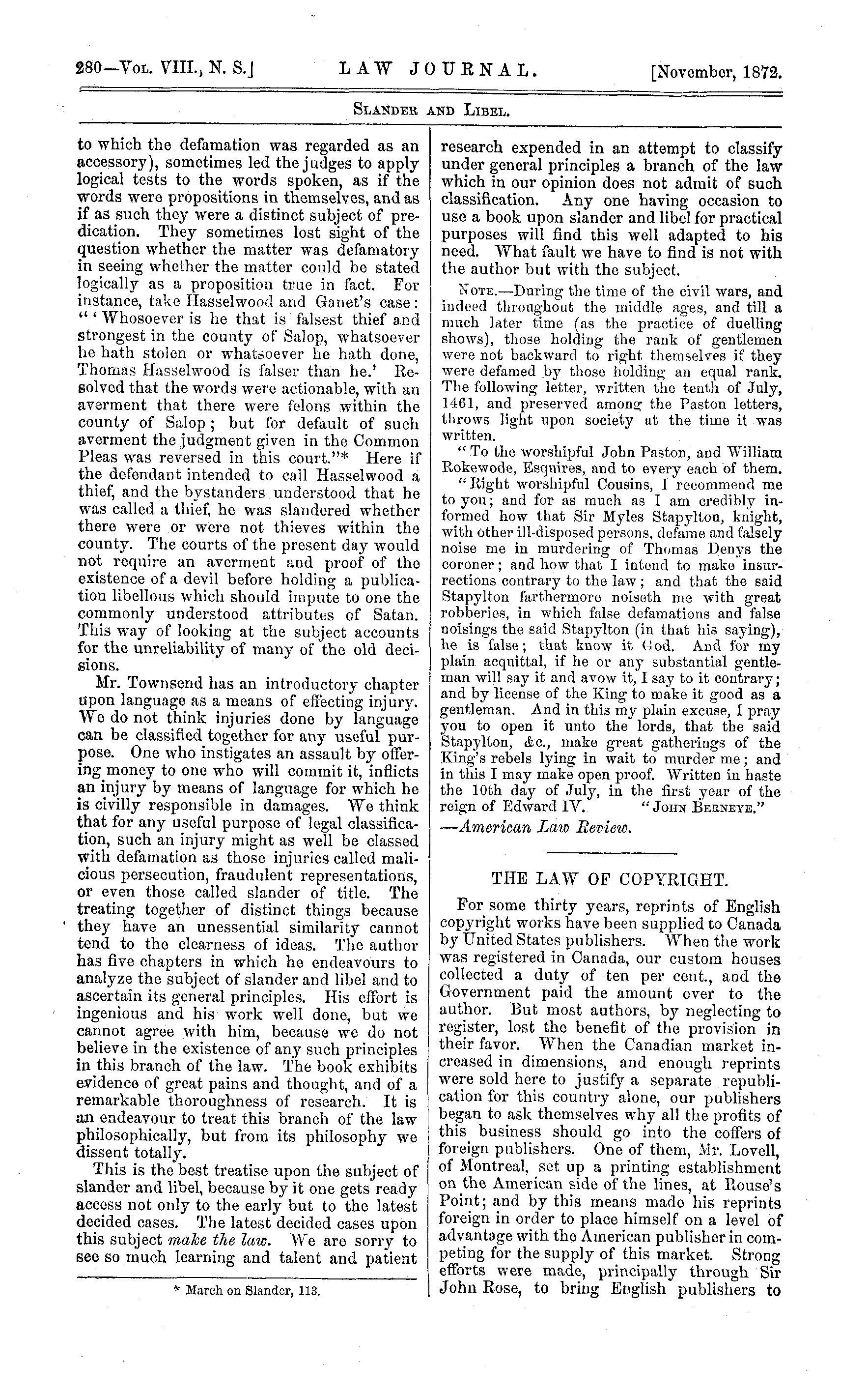 The Canada law journal : [no. 11] (Nov. 1872)]