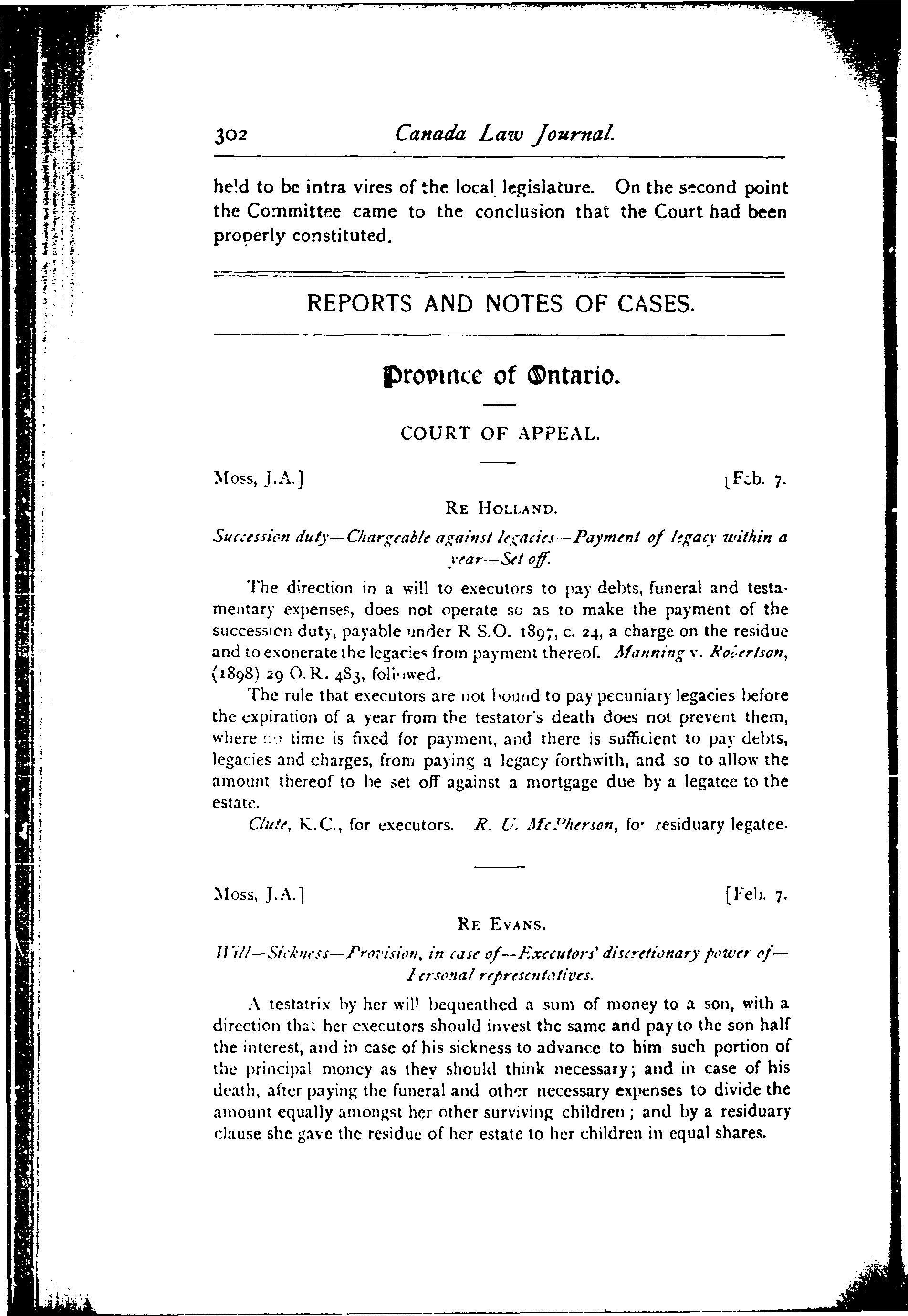 Canada law journal [Vol. 38, no. 8 (Apr. 15, 1902)]